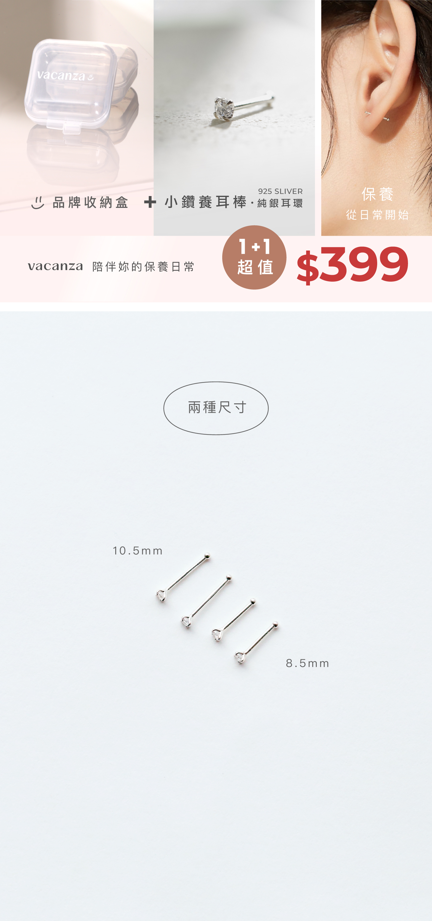 【加購】小鑽養耳棒・純銀耳環(銀/8.5mm)贈限量品牌收納盒