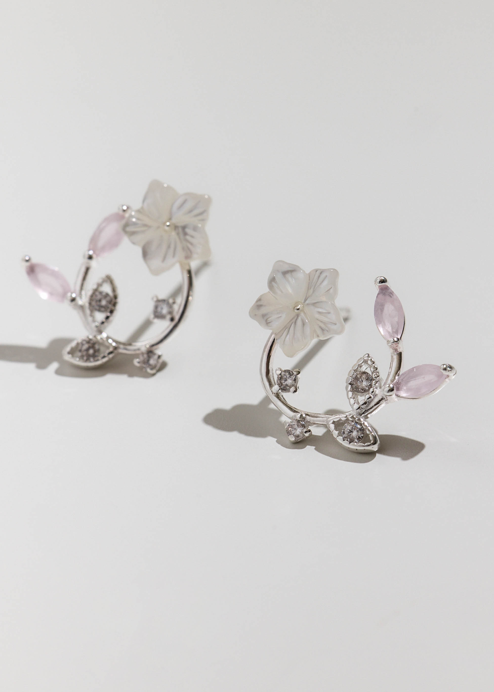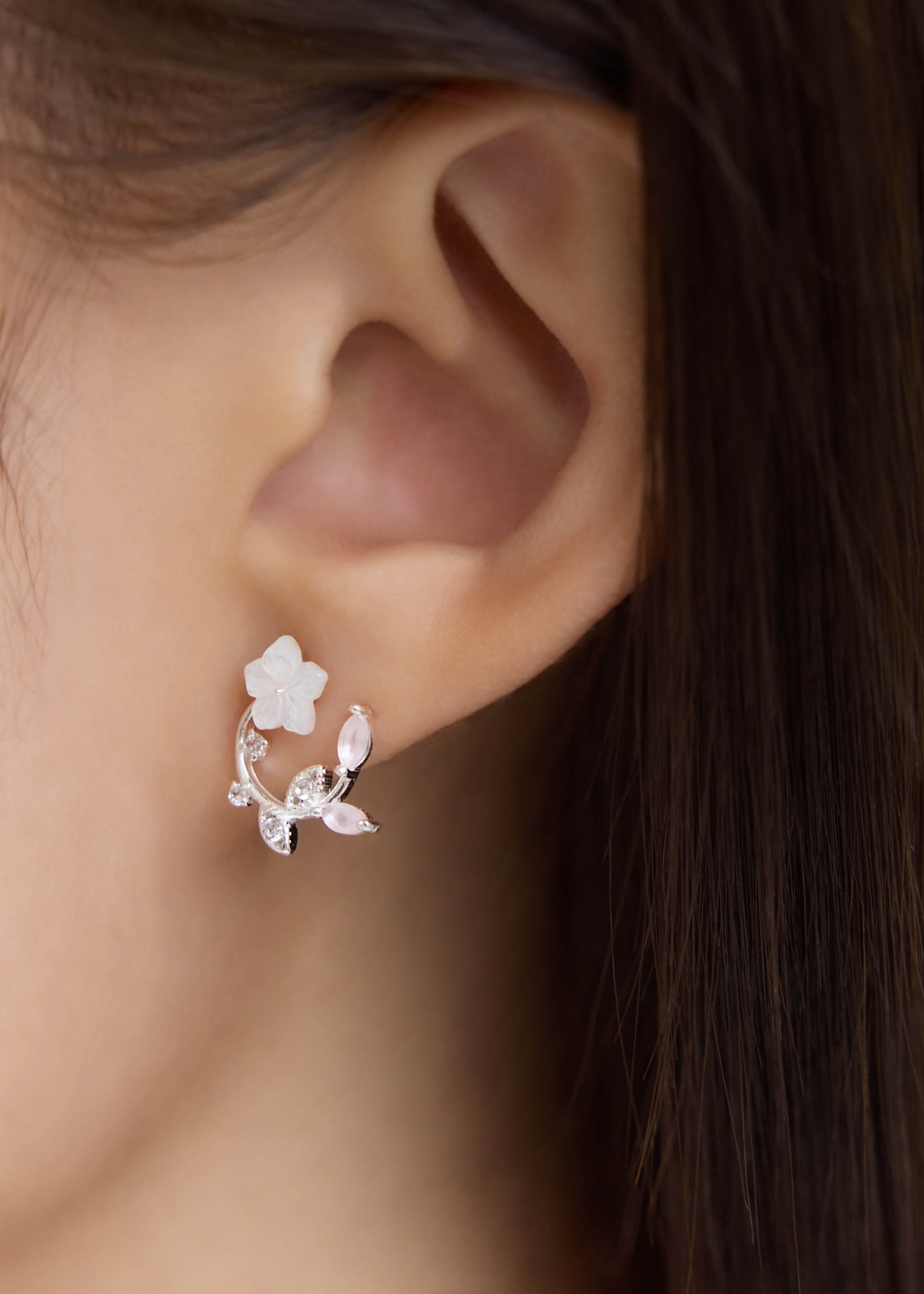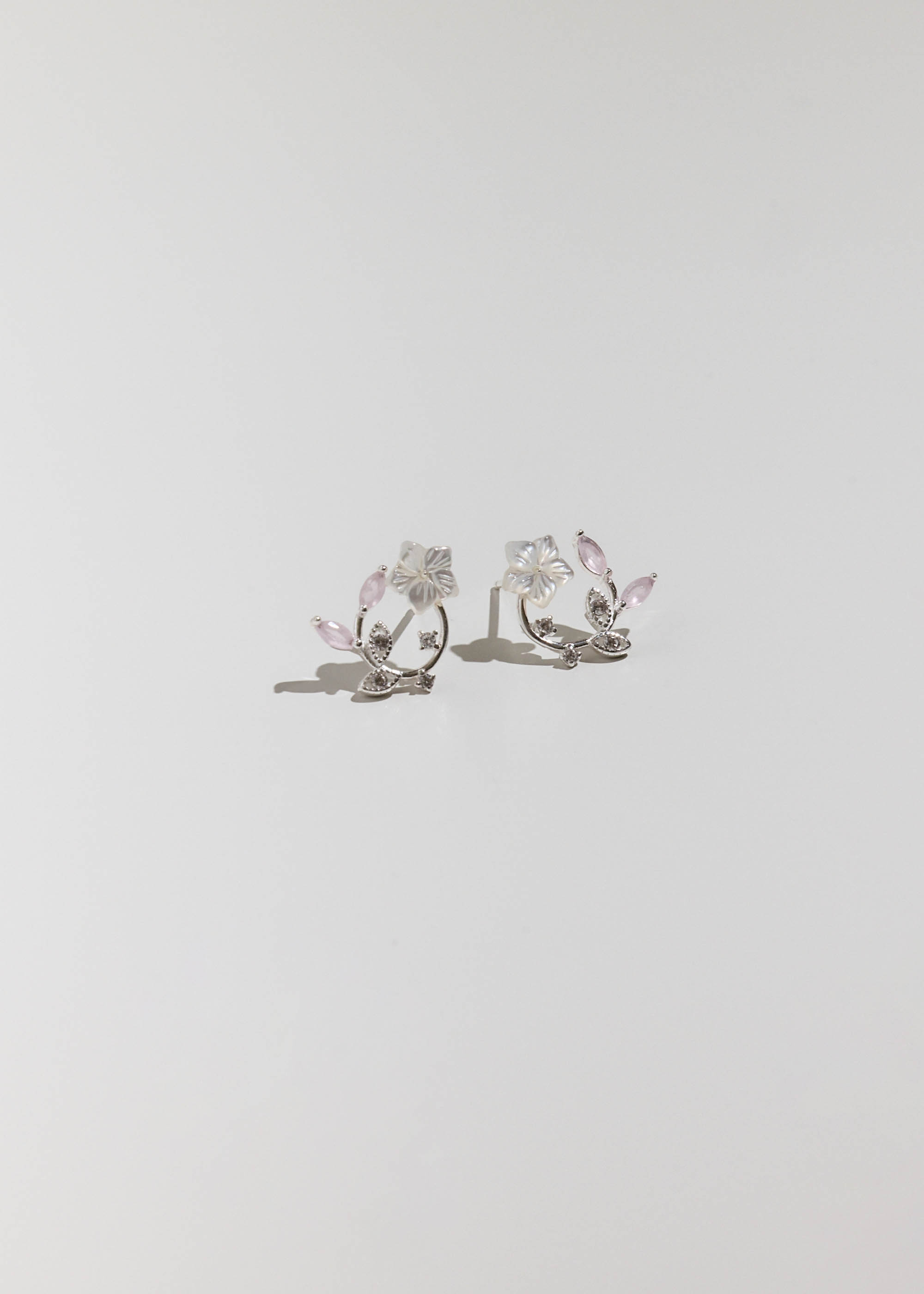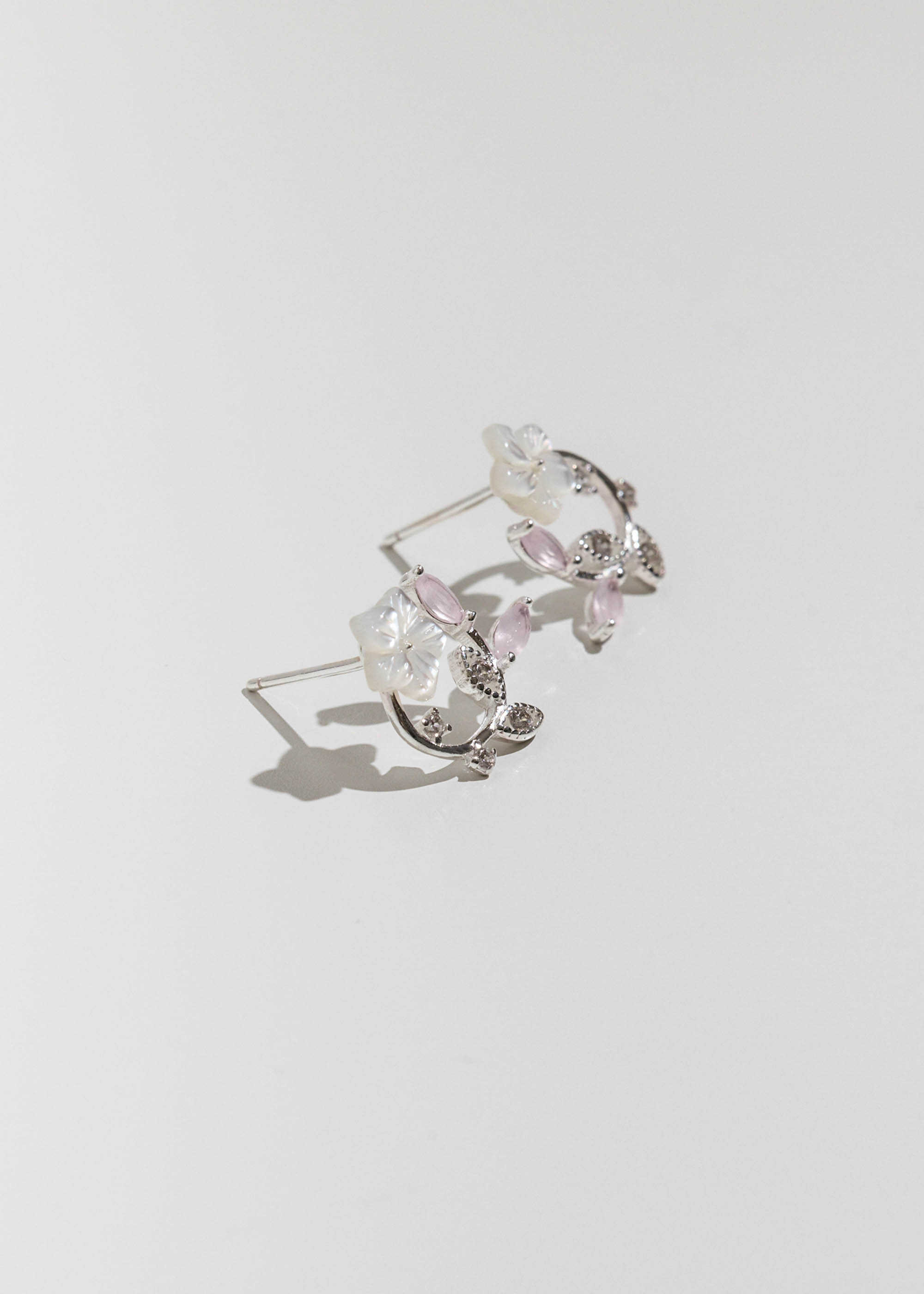 玫色櫻花圈・純銀耳環