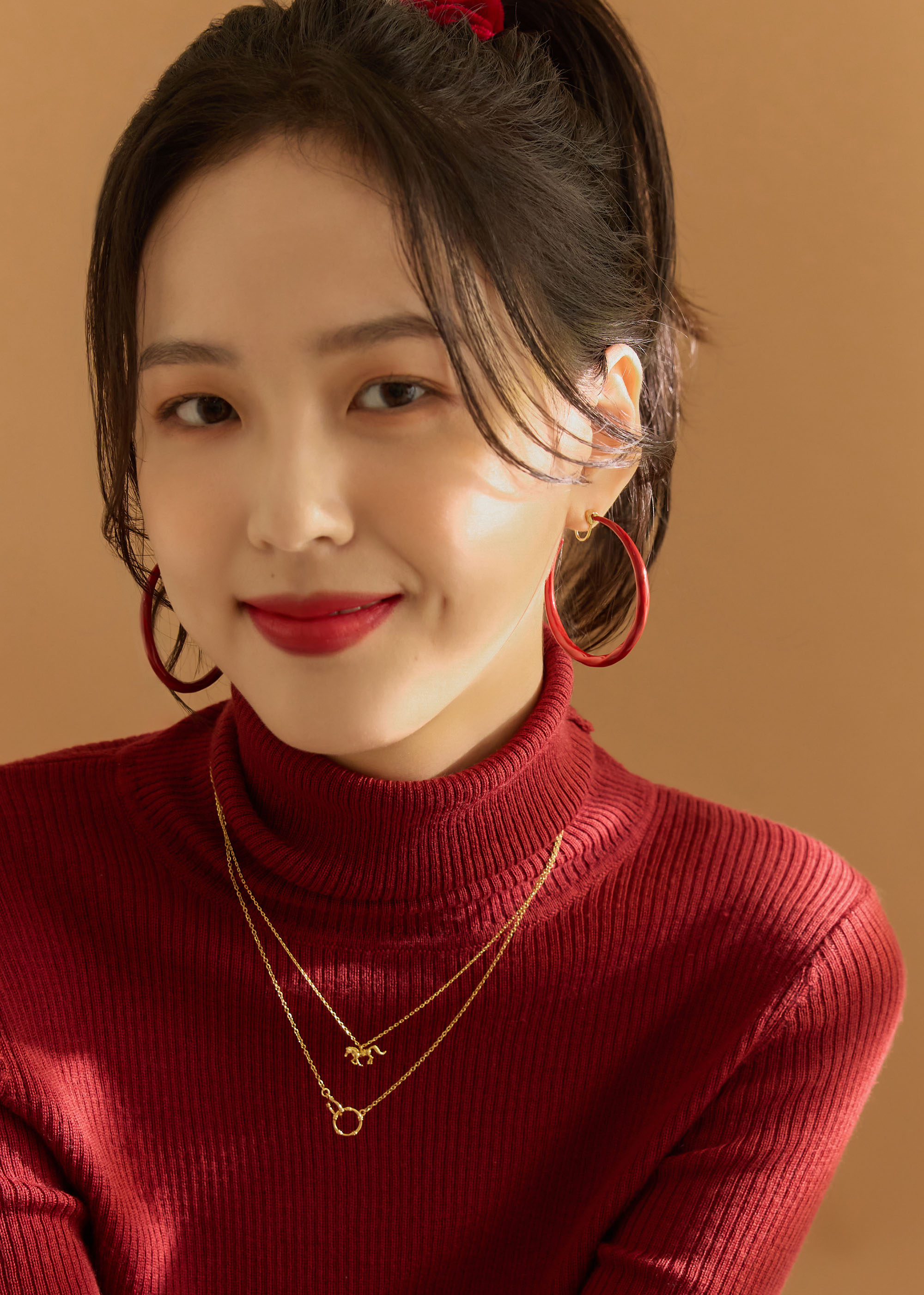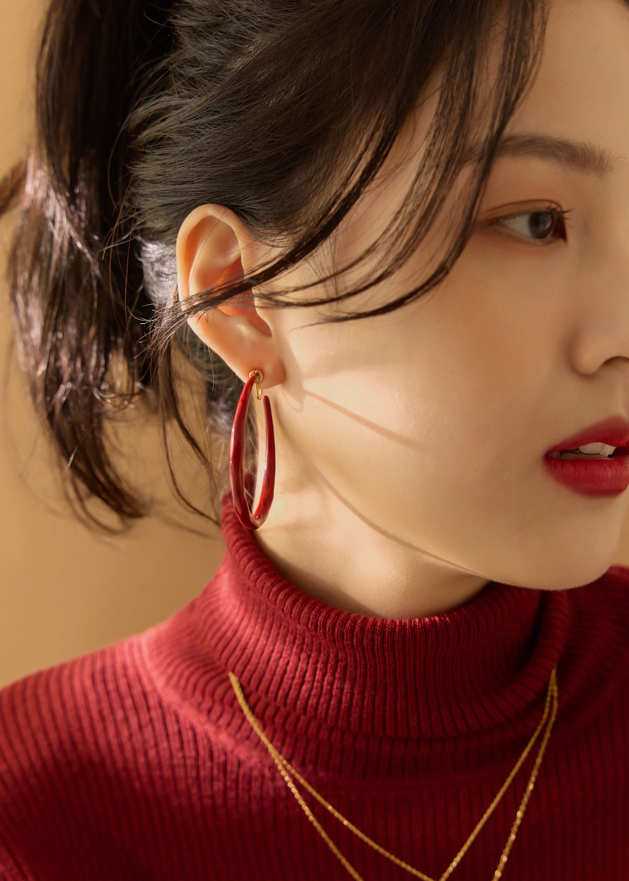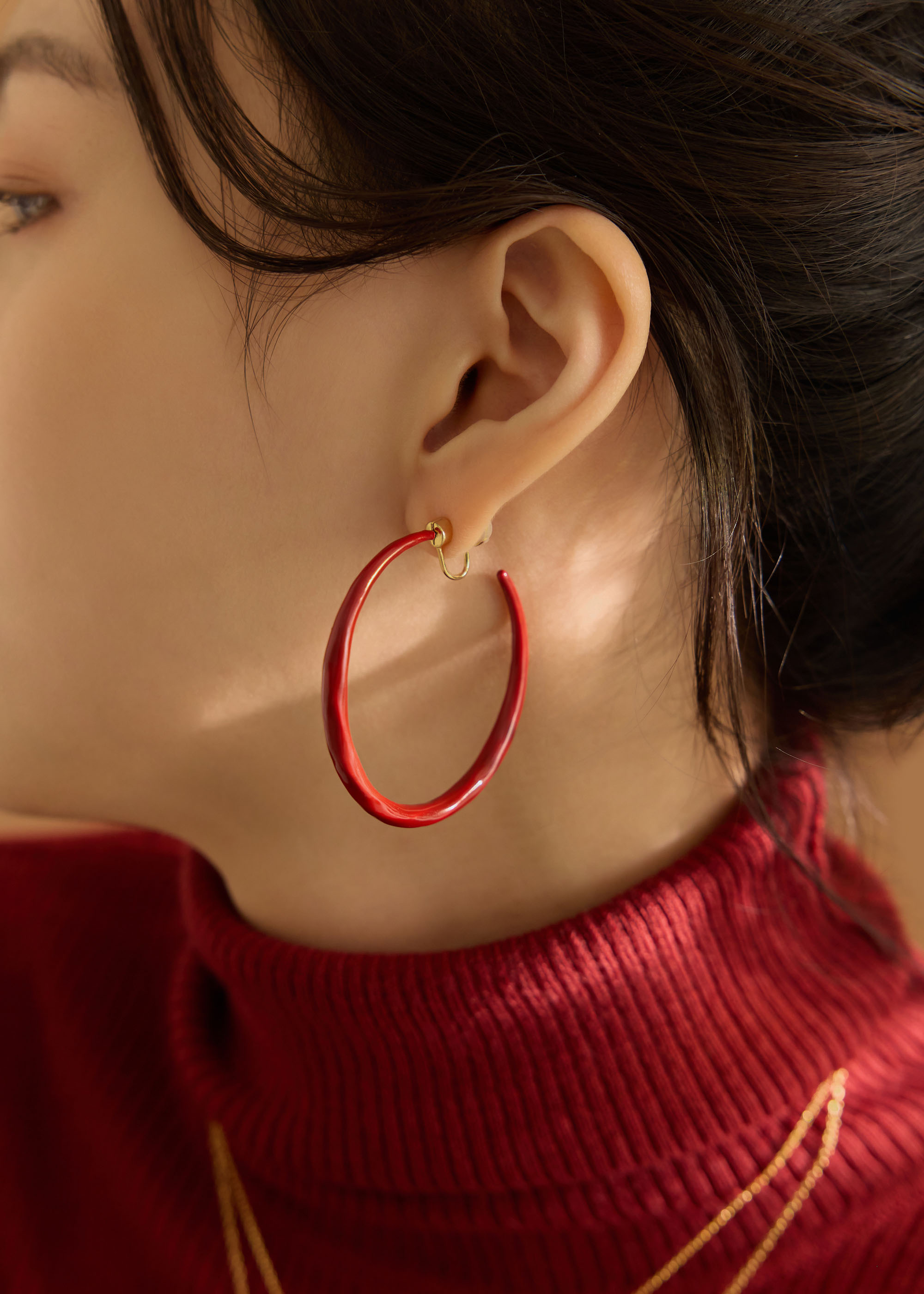 簡約紅・可旋轉垂掛耳夾