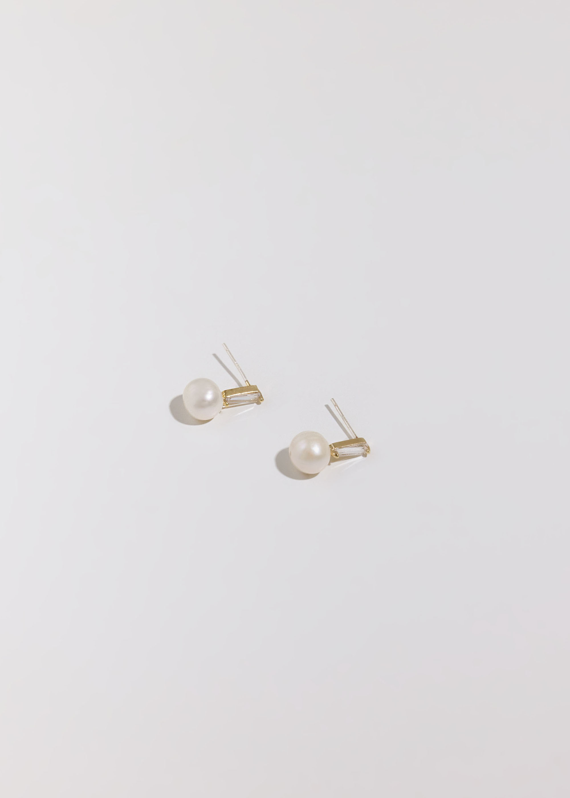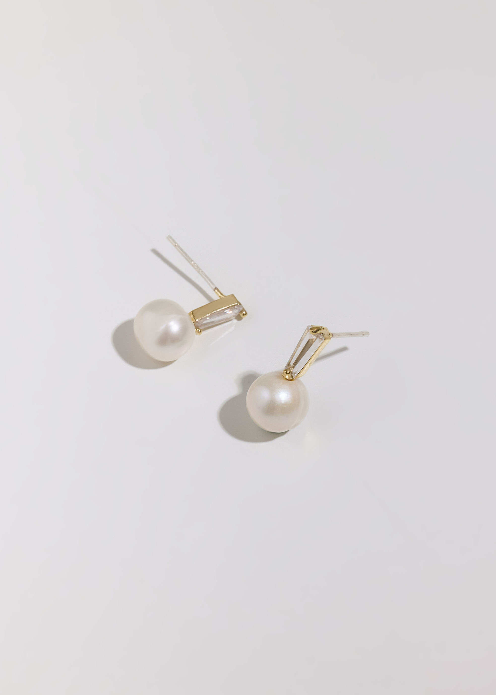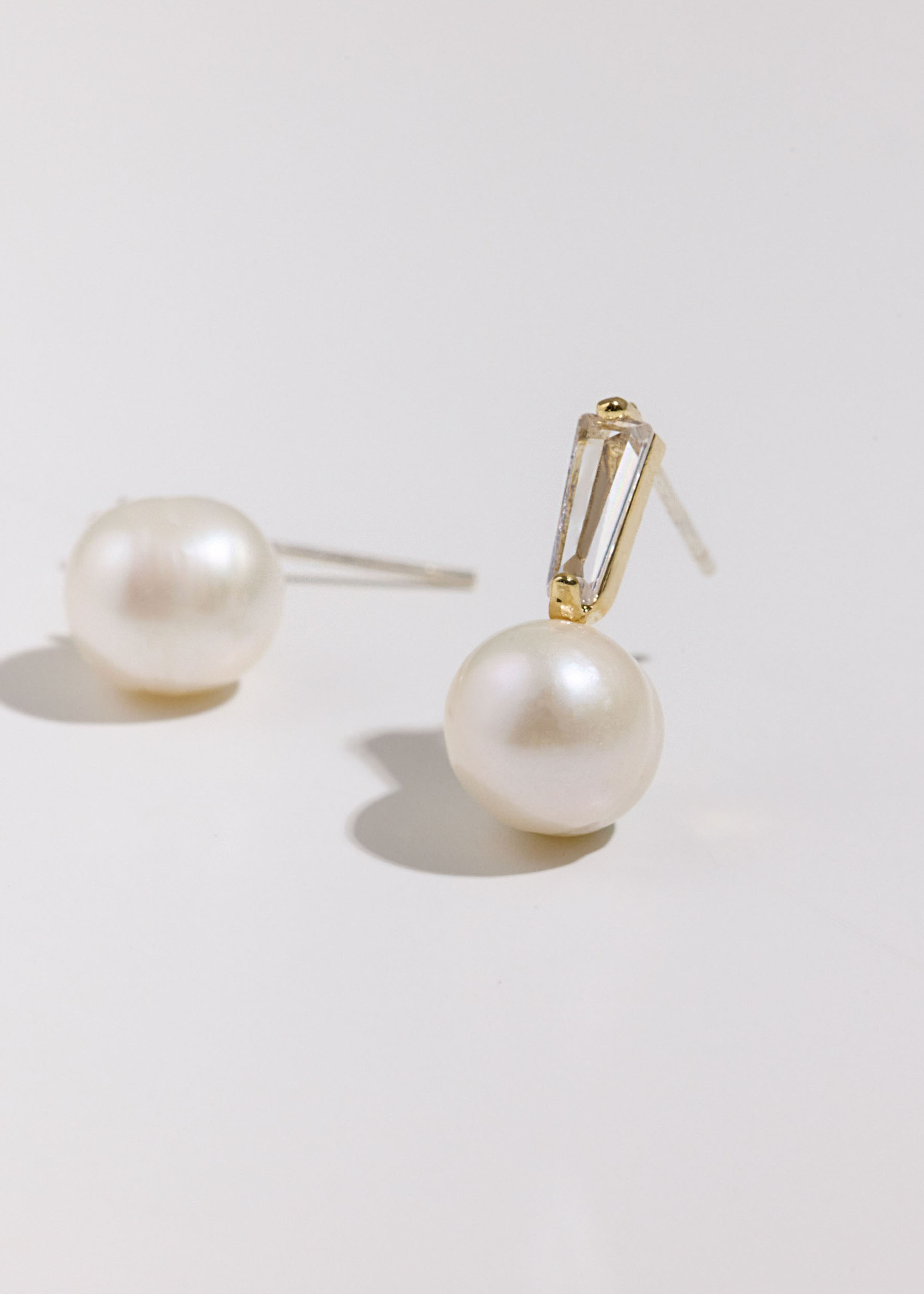 優雅方鑽淡水珍珠・銀針耳環