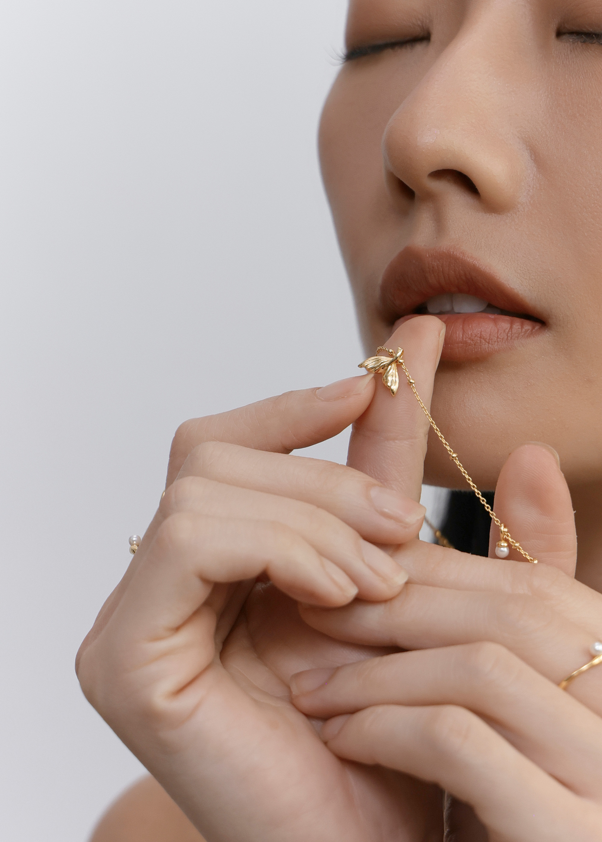 墜飾與淡水珍珠可隨喜好調整位置,展現多種層次變化。