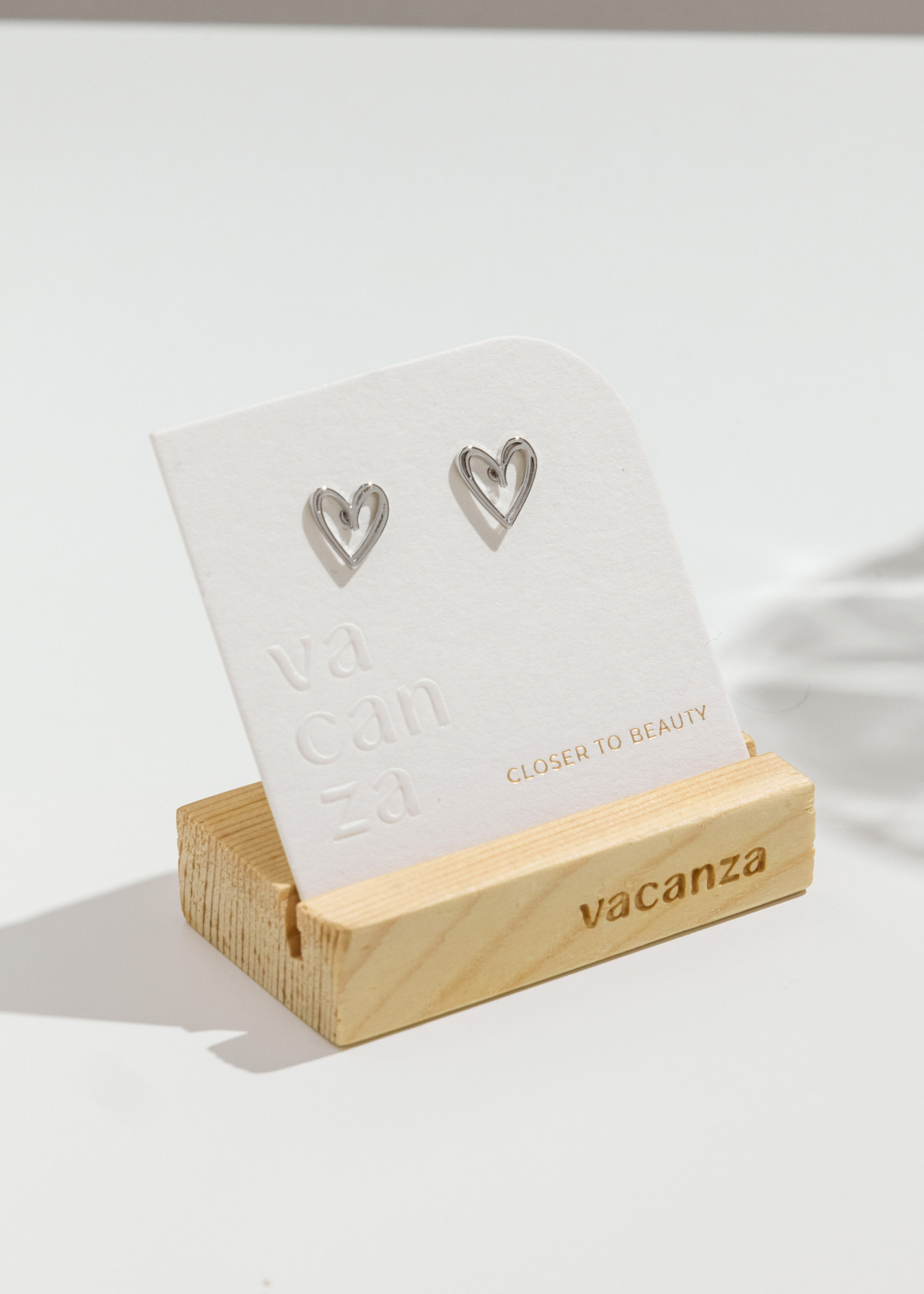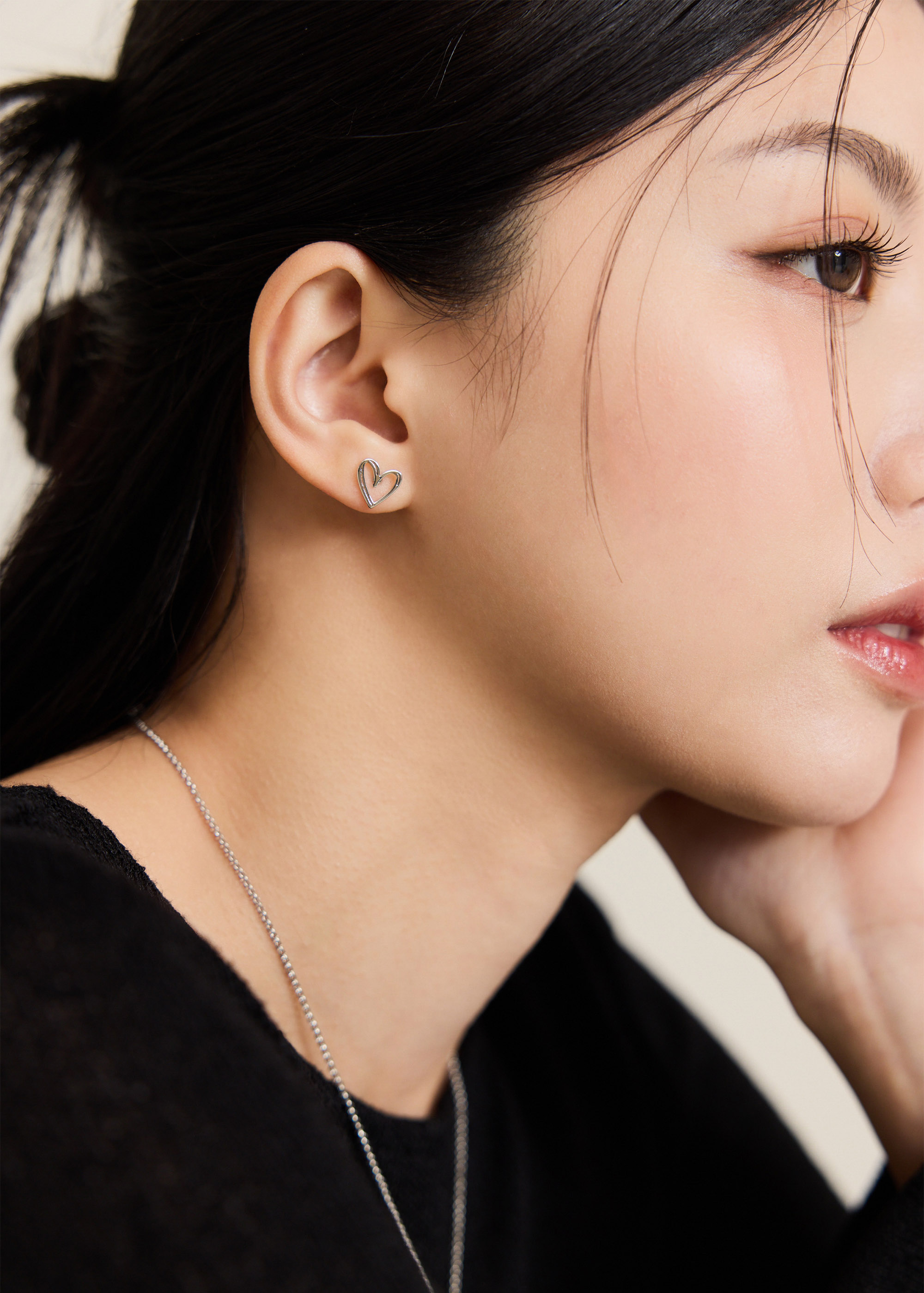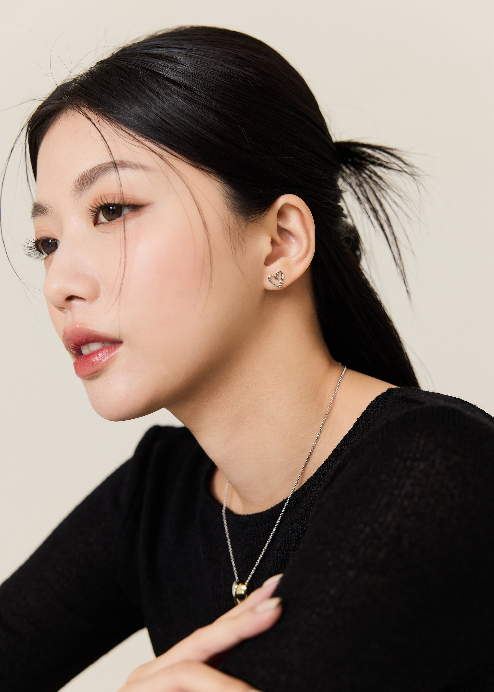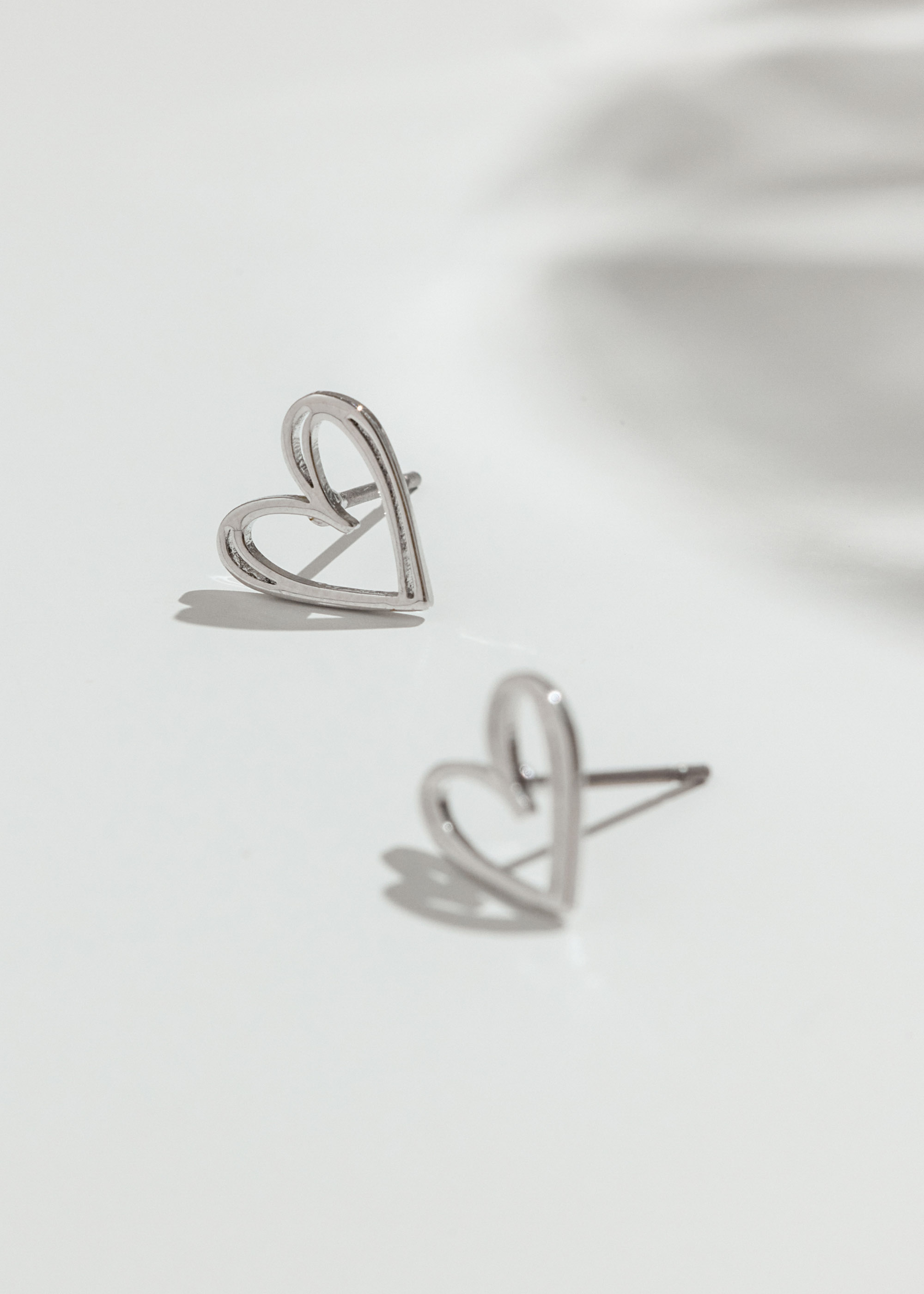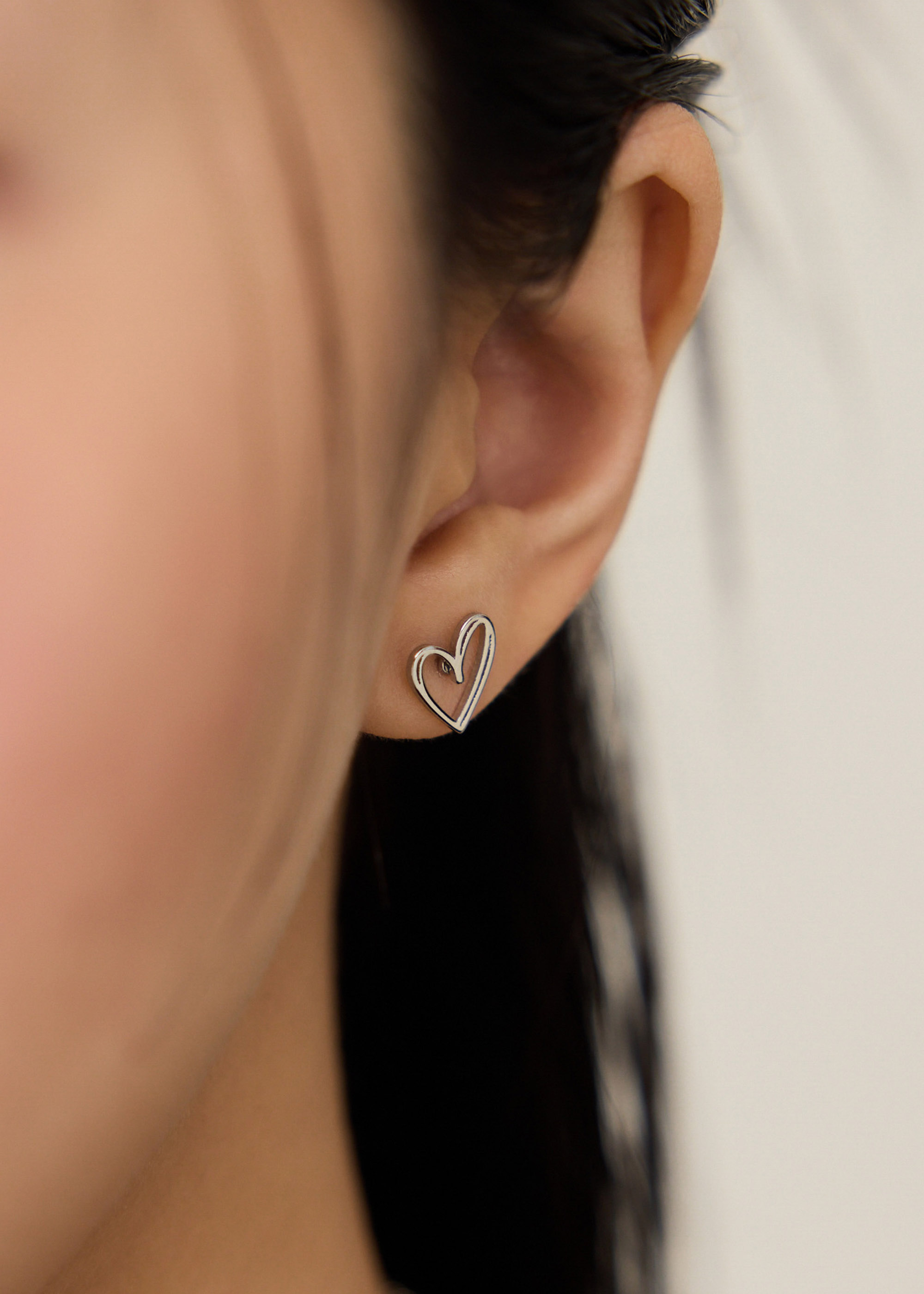 雙線心型・鋼針耳環