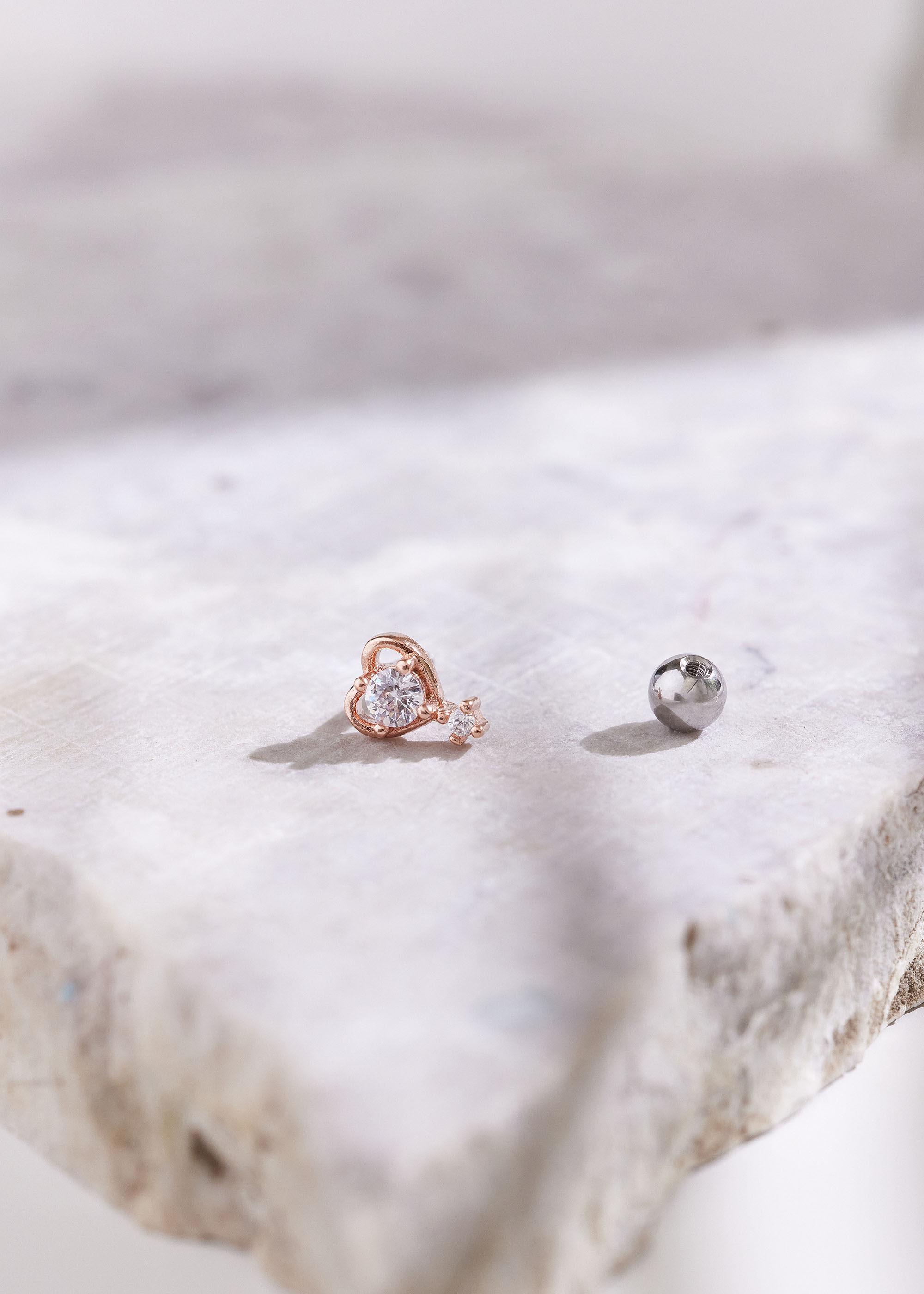 鑲鑽鏤空愛心.醫療鋼轉珠耳環