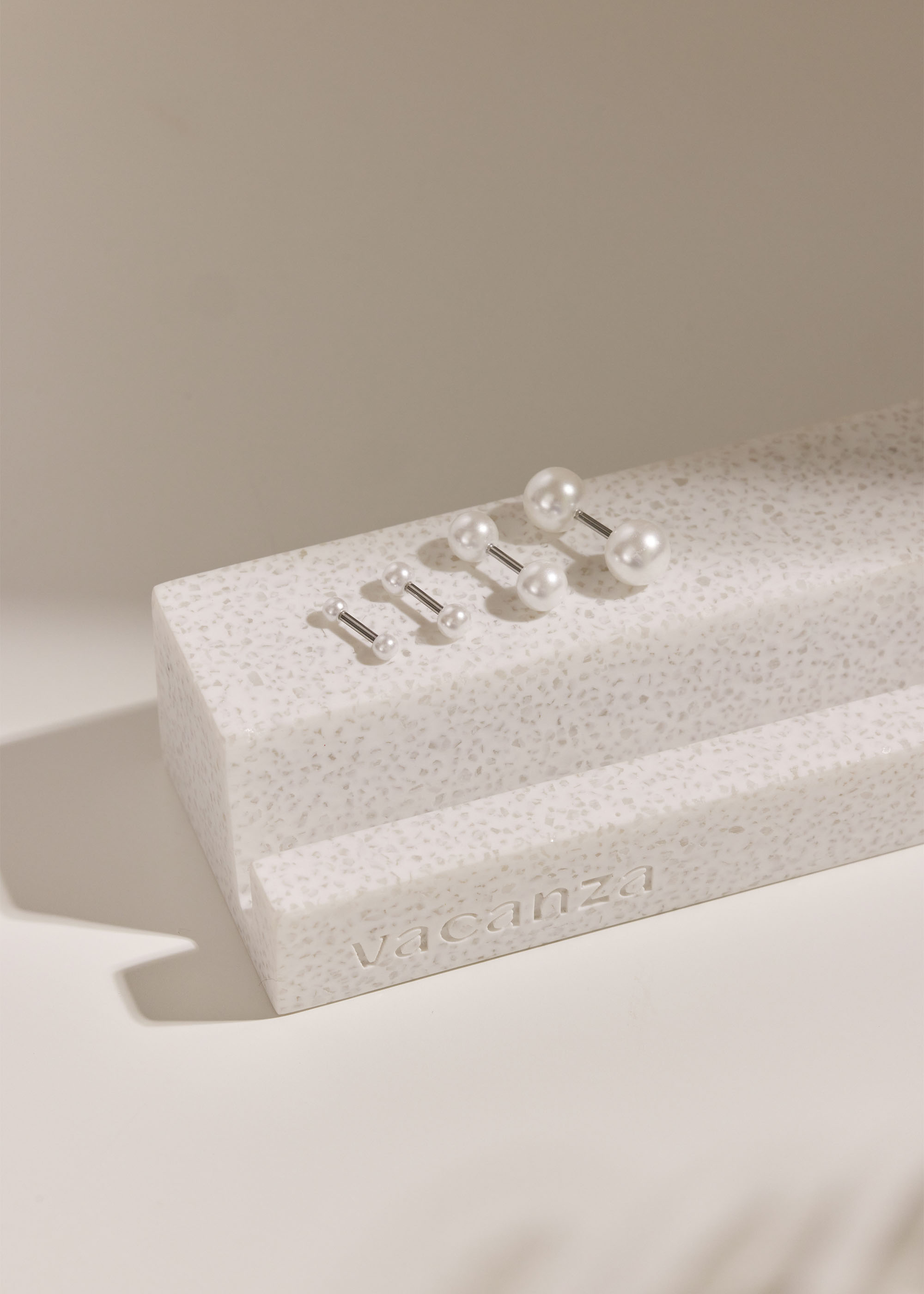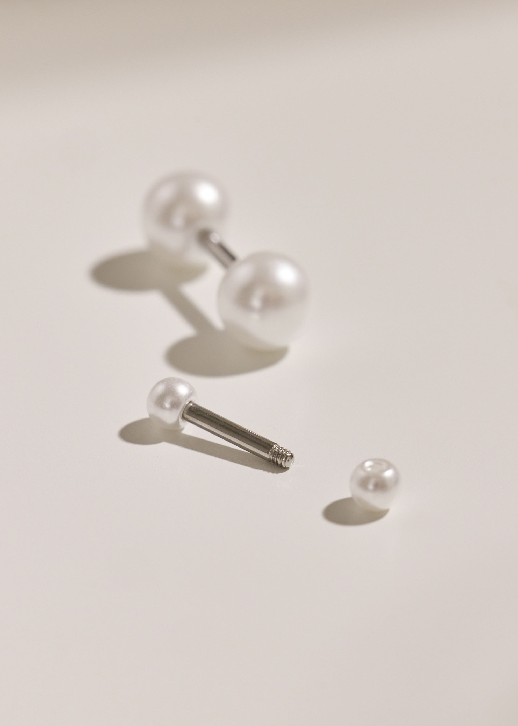 雙邊珍珠.醫療鋼轉珠耳環
