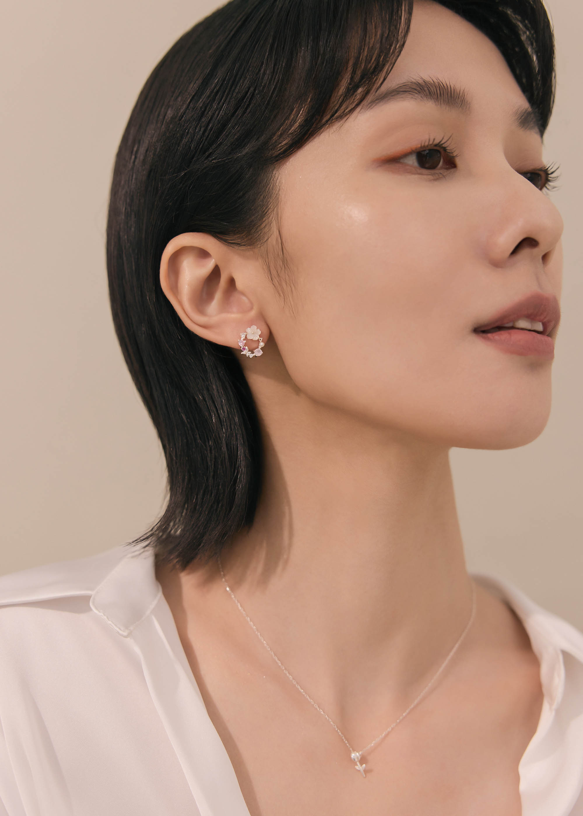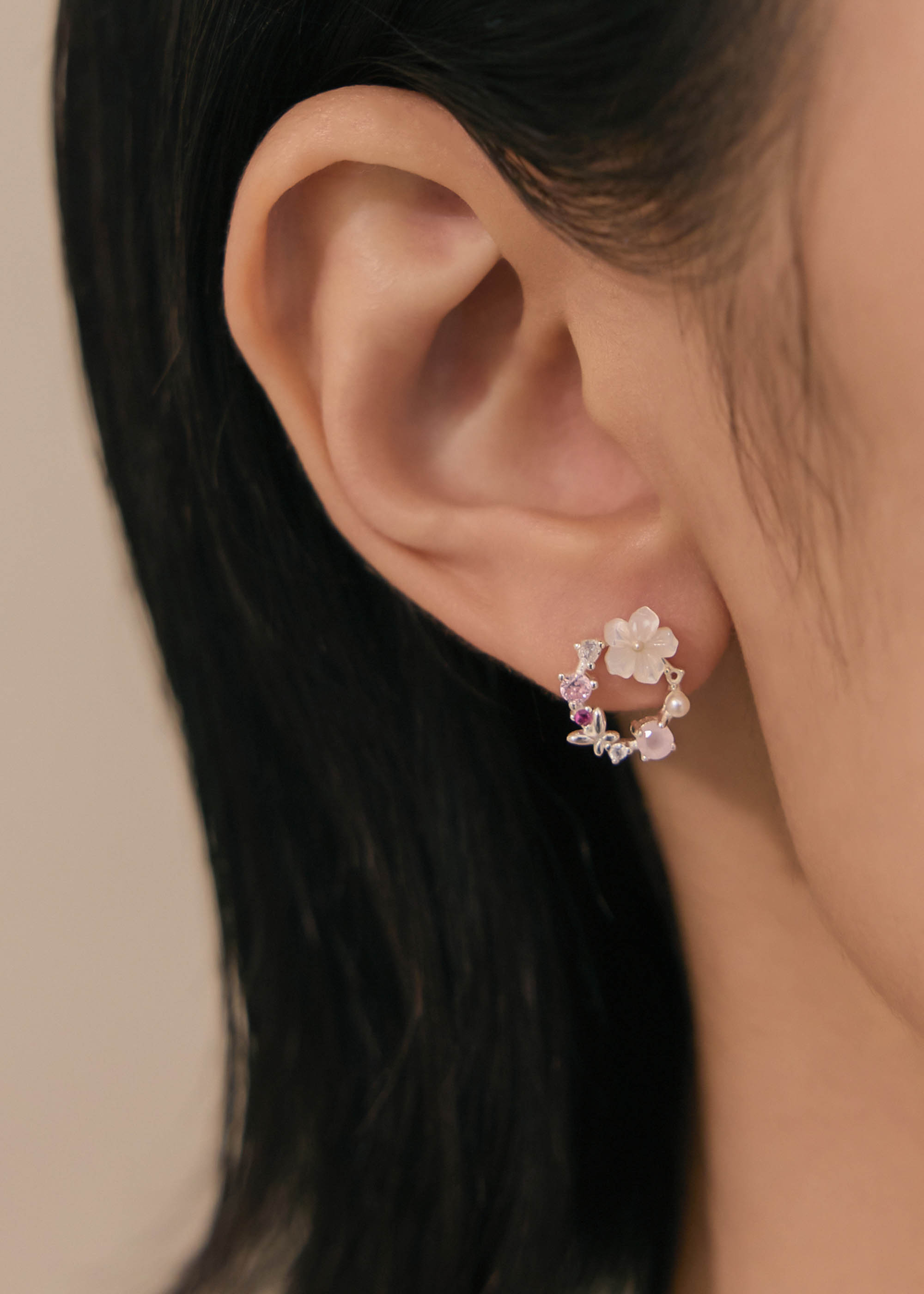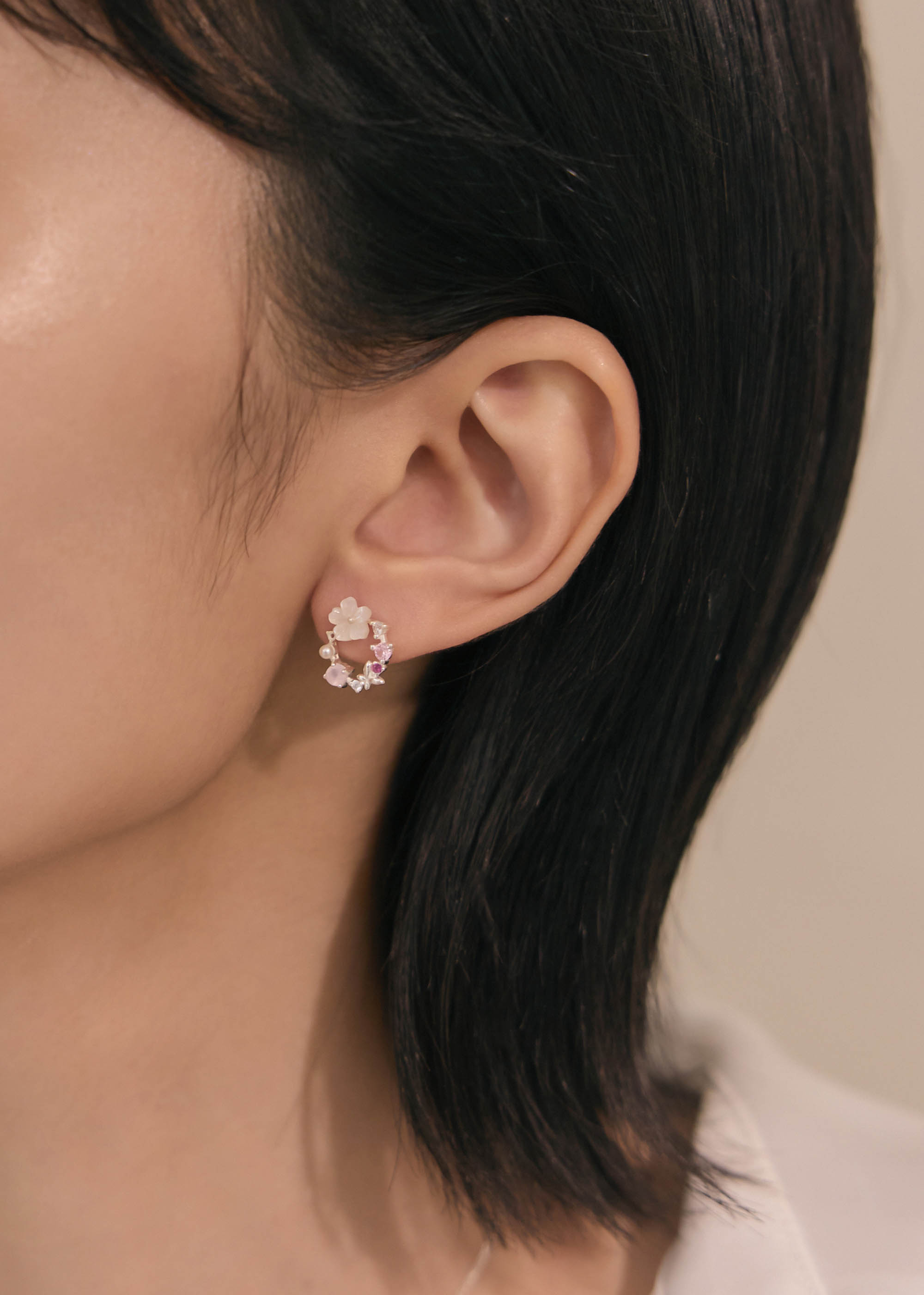 貝殼花環・純銀耳環