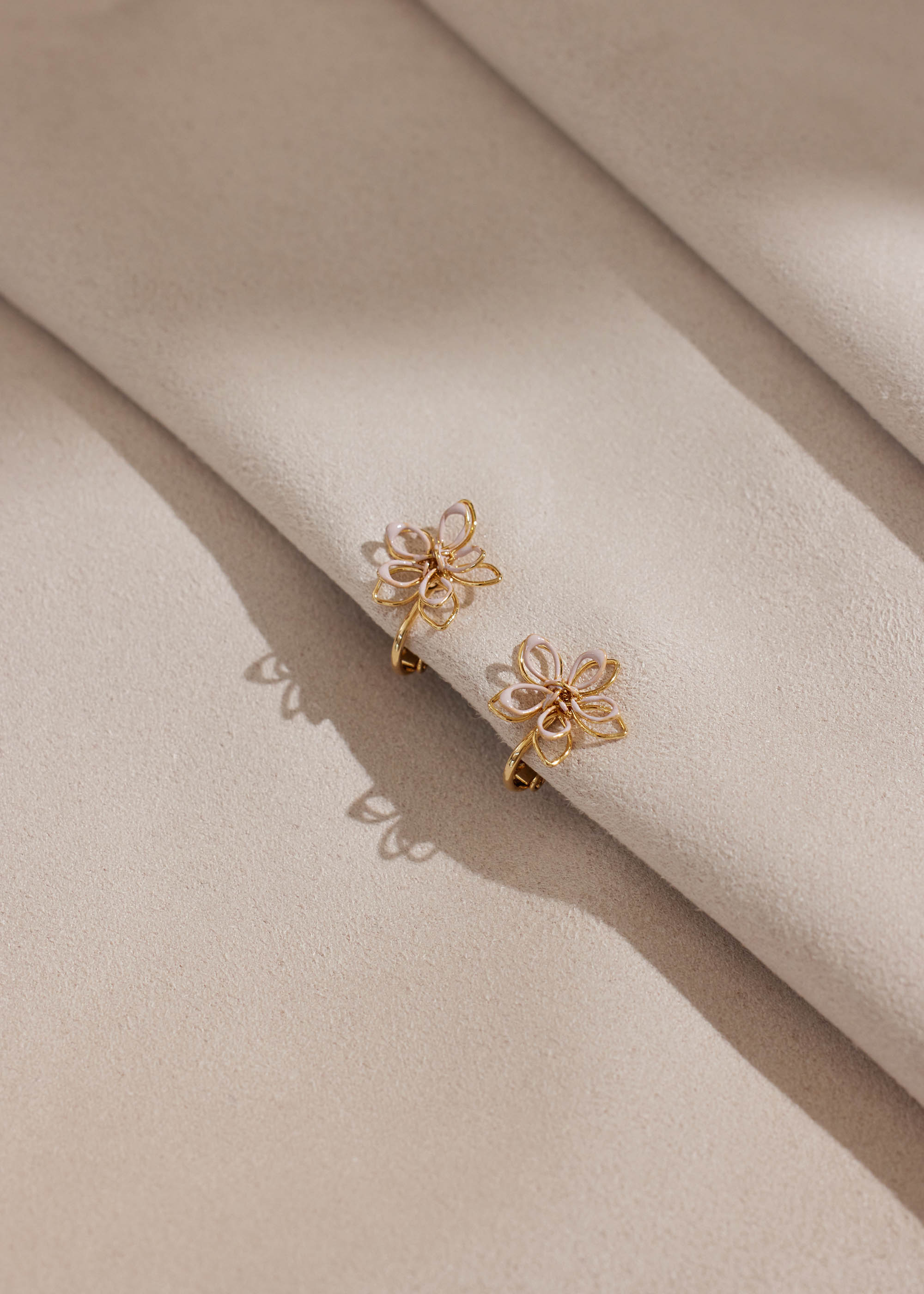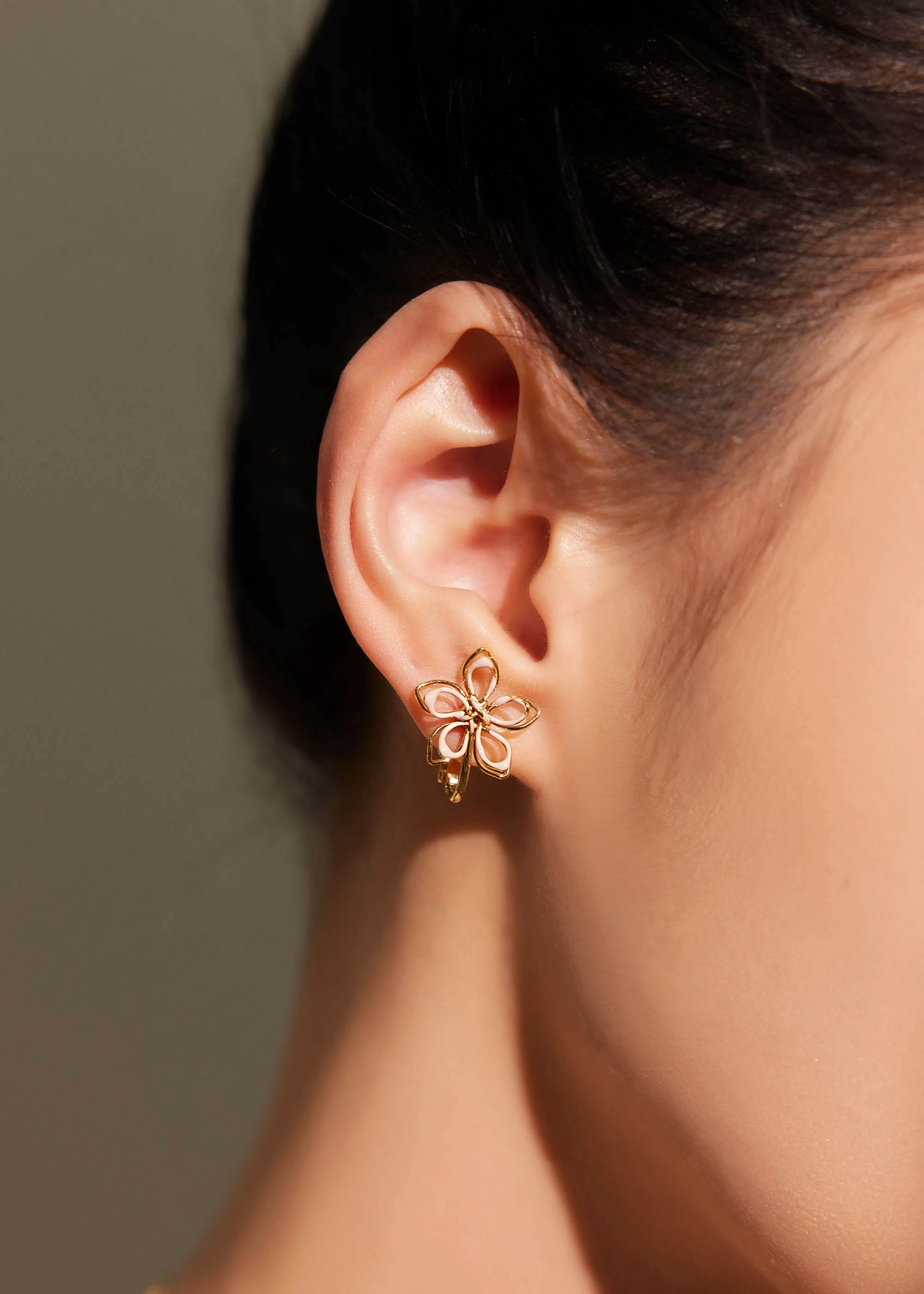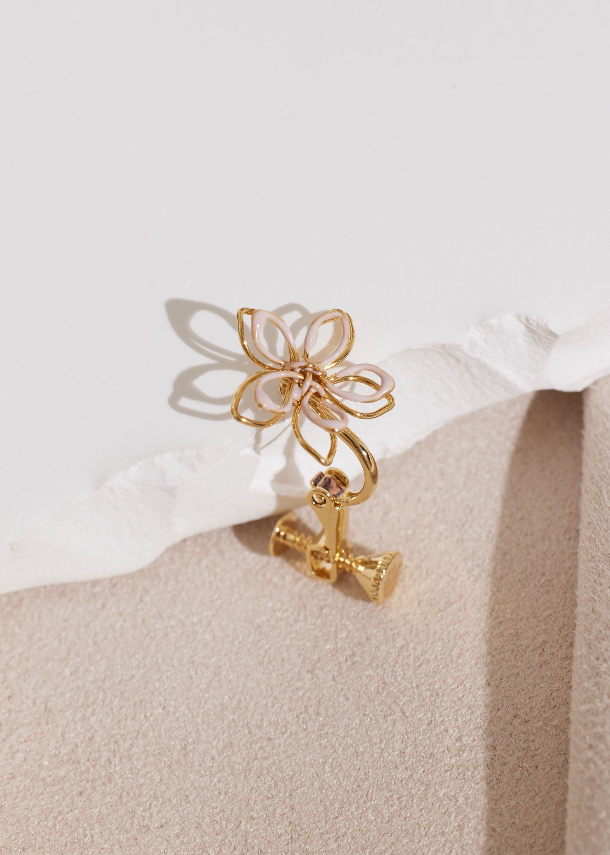滴釉鏤空花朵・夾式耳環