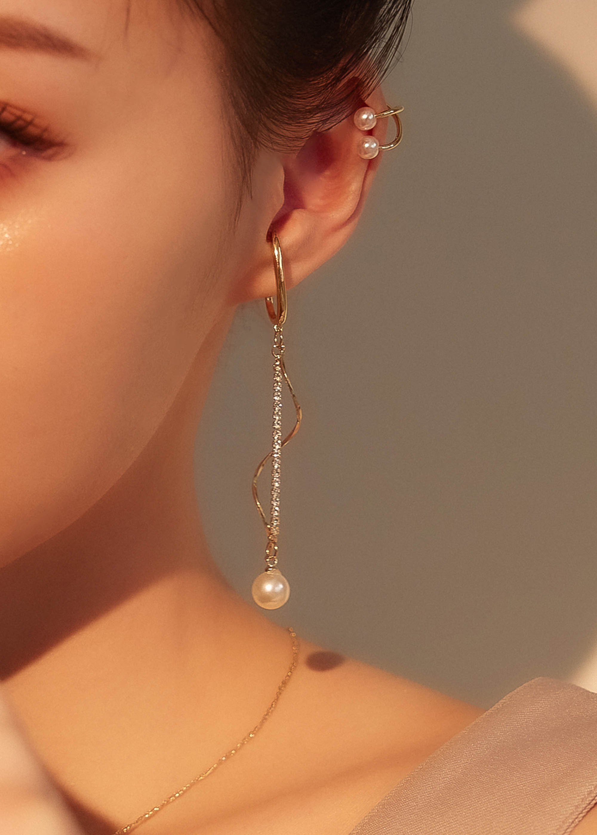 珍珠雙線交錯・耳骨夾