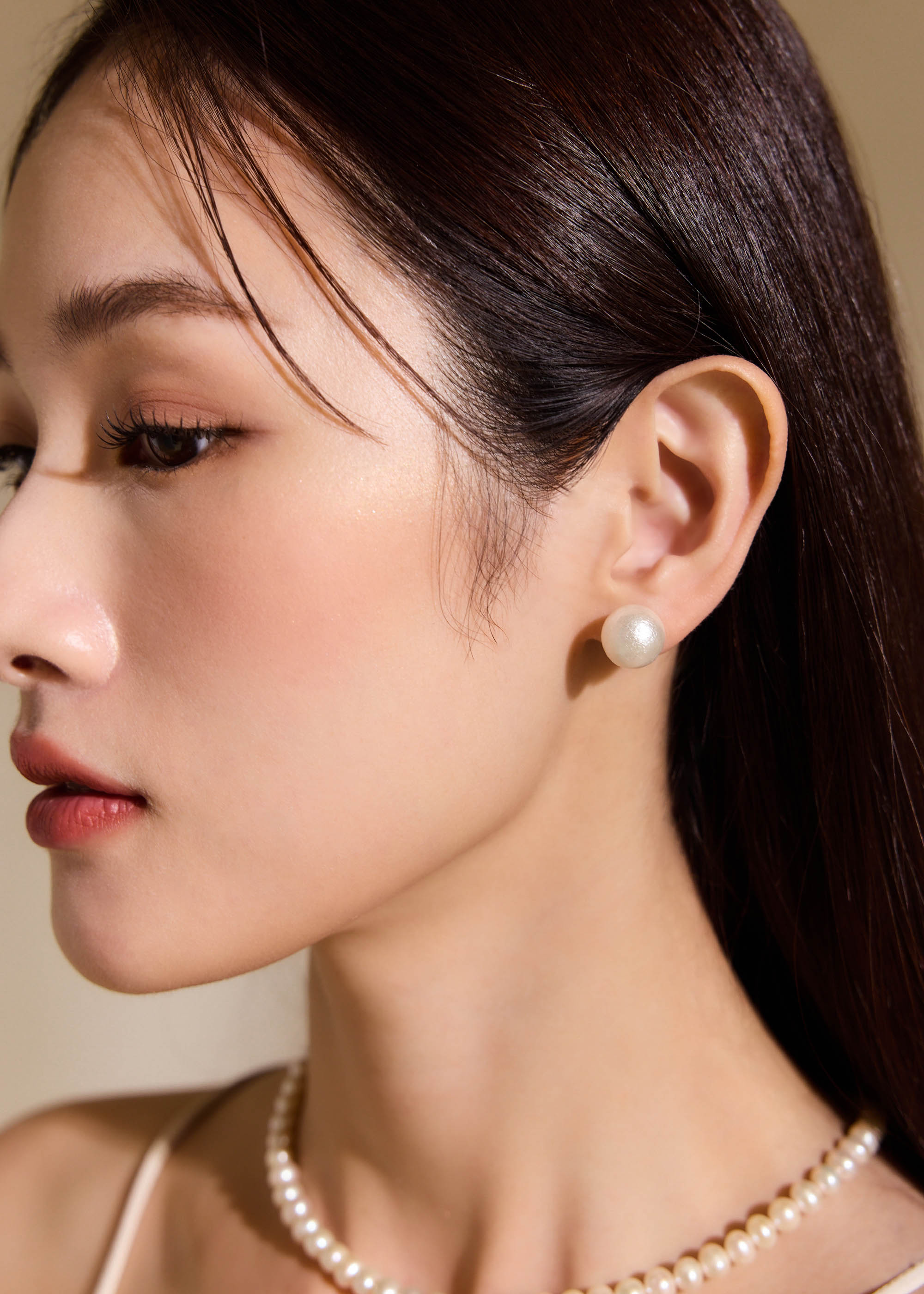 炫彩棉珍珠・鋼針耳環