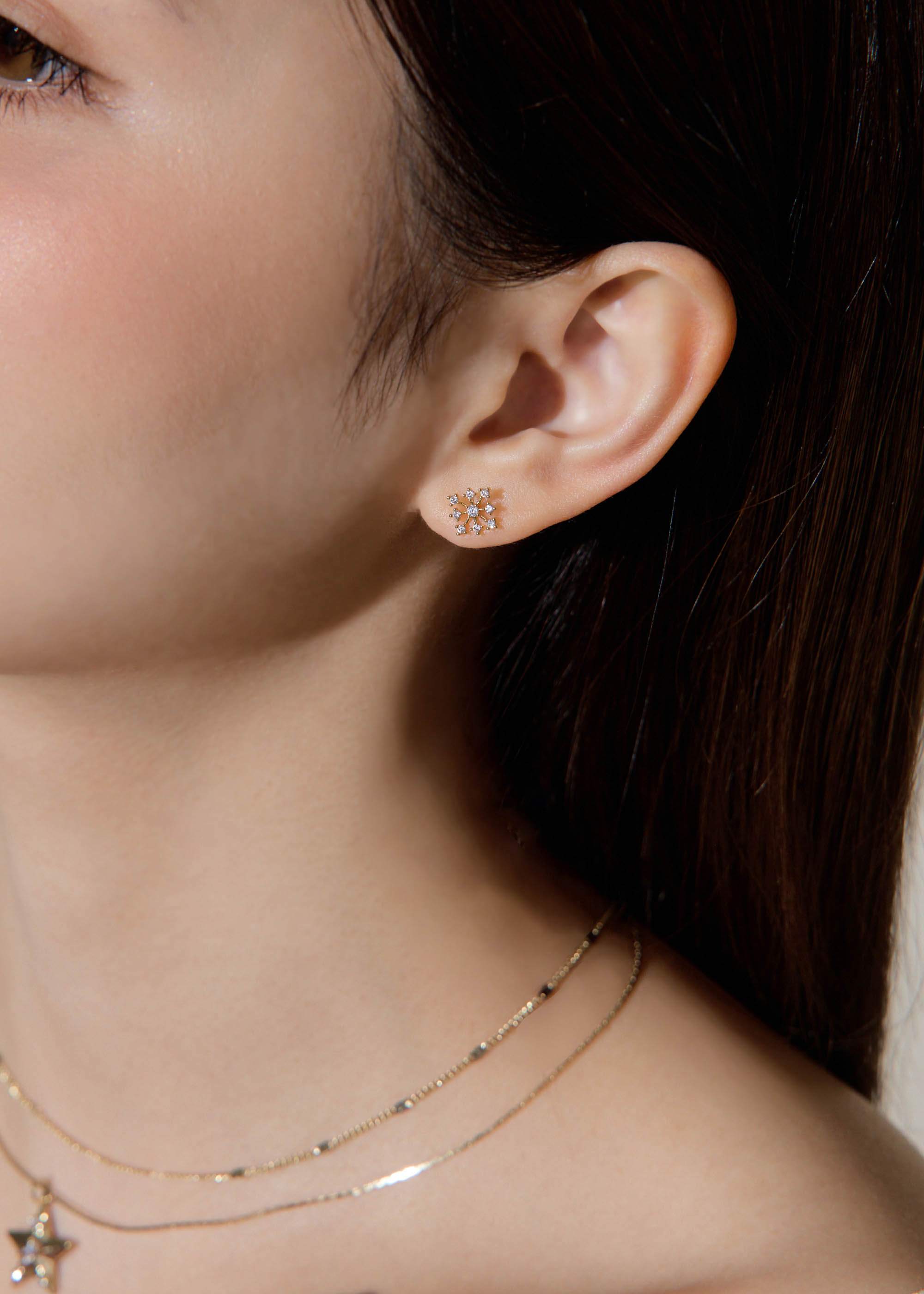 滿鑽金雪・銀針耳環