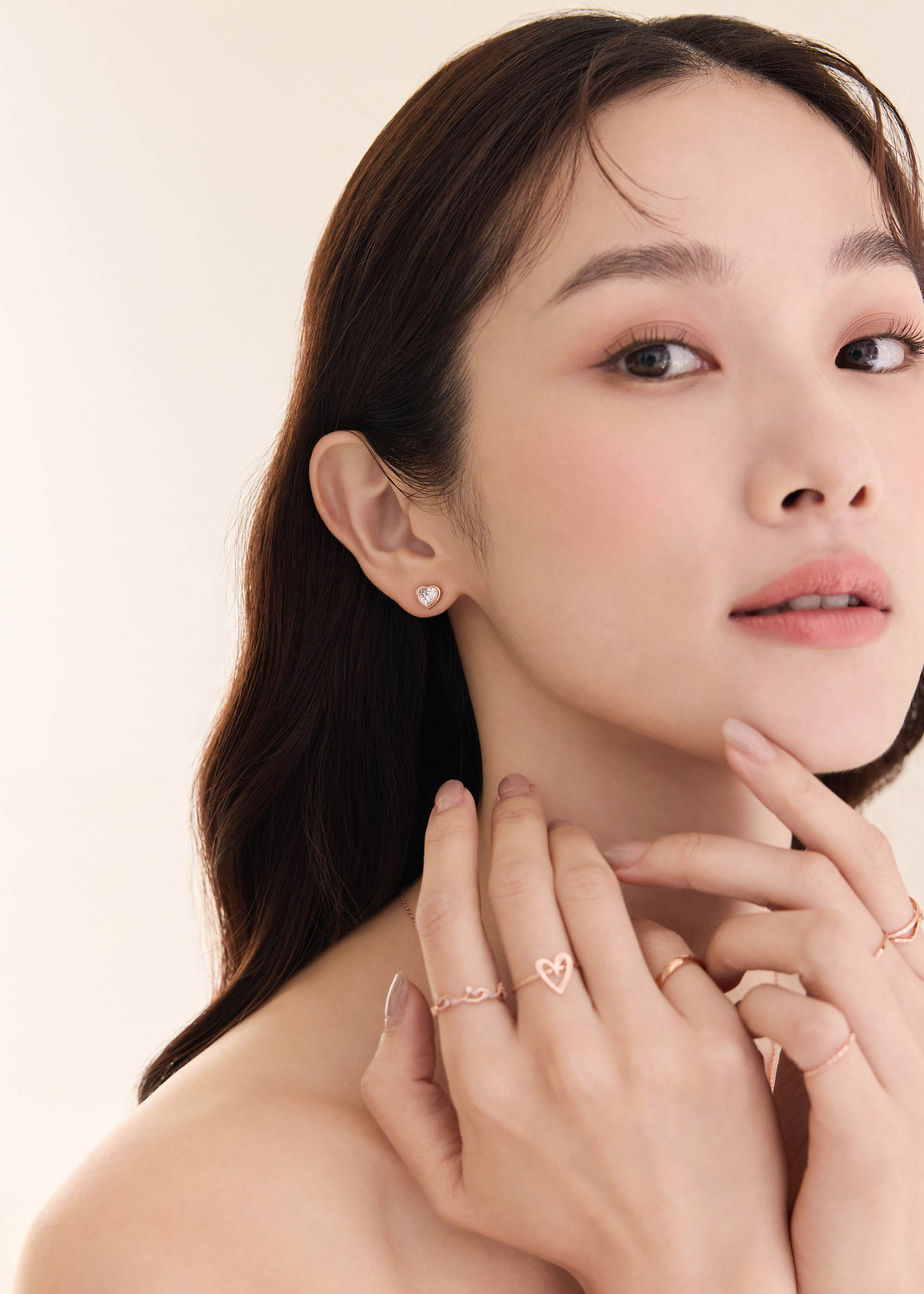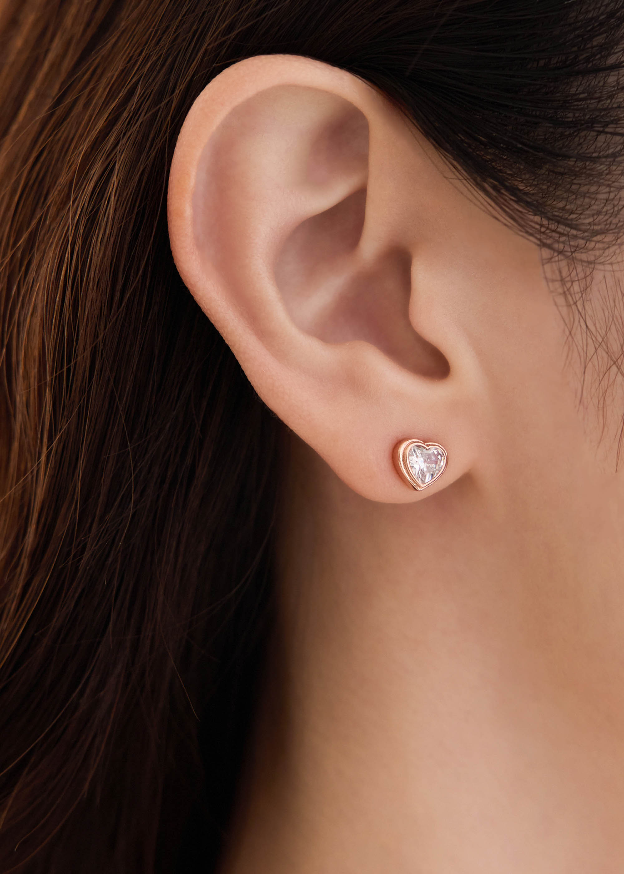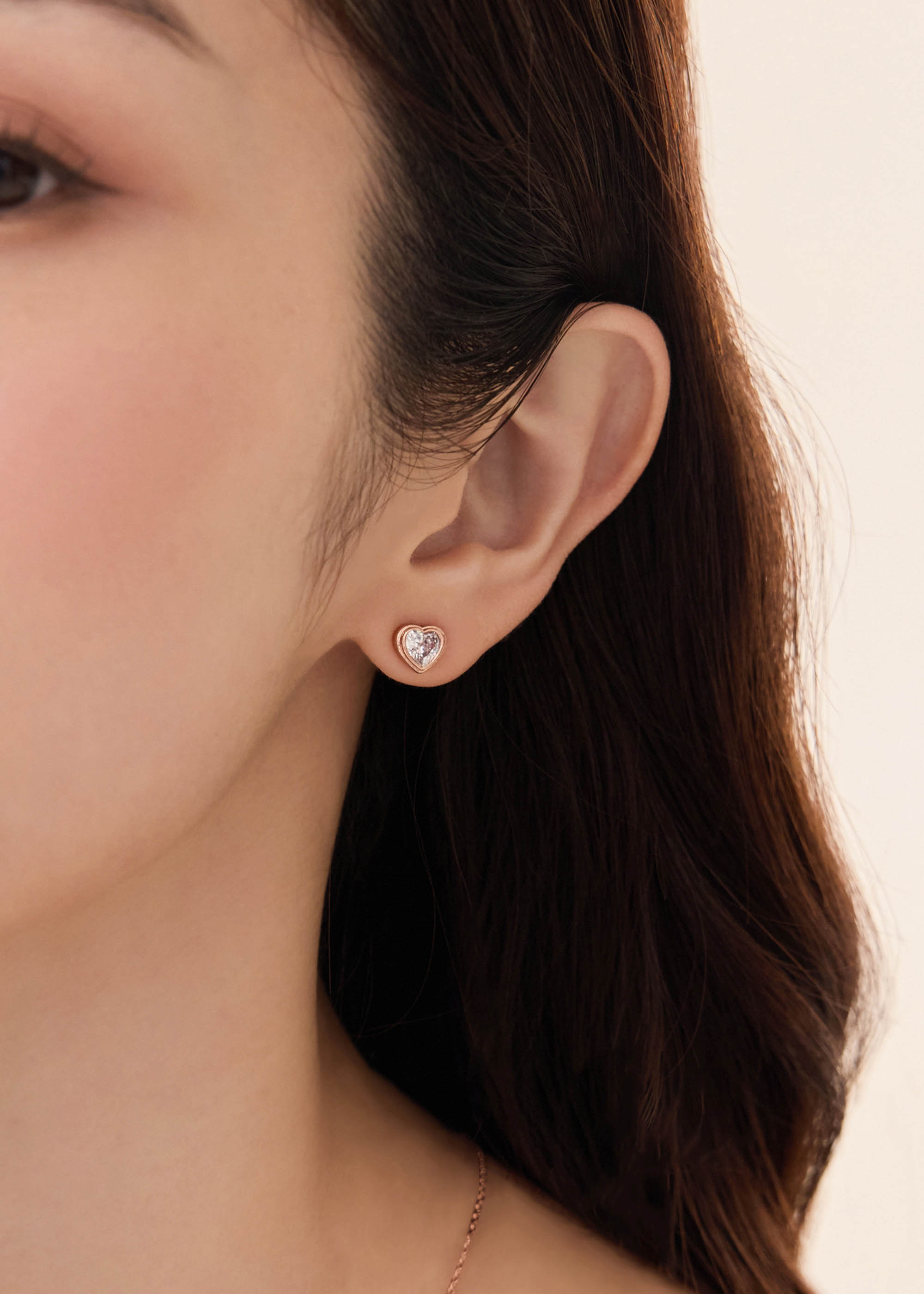 玫色愛心・銀針耳環