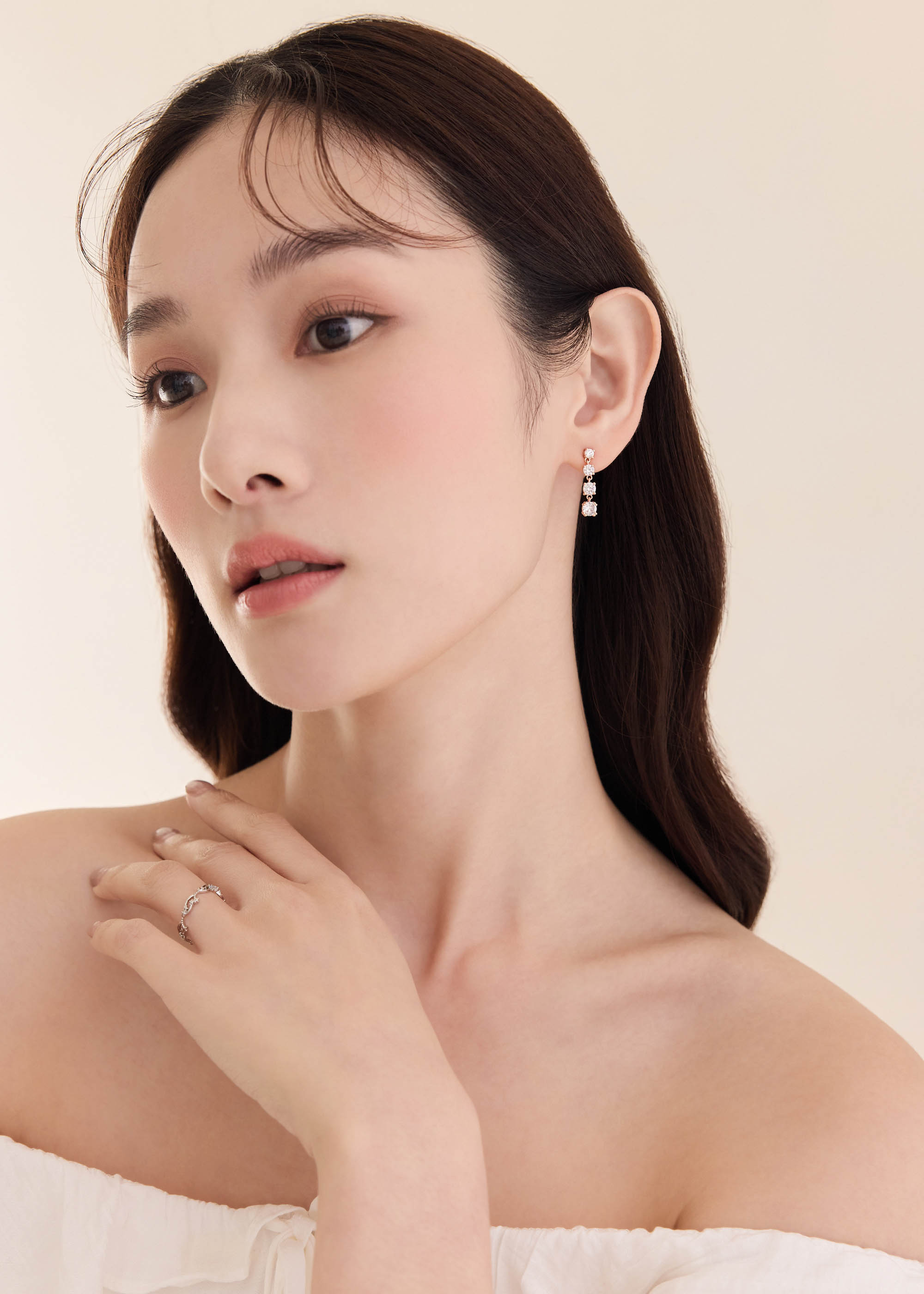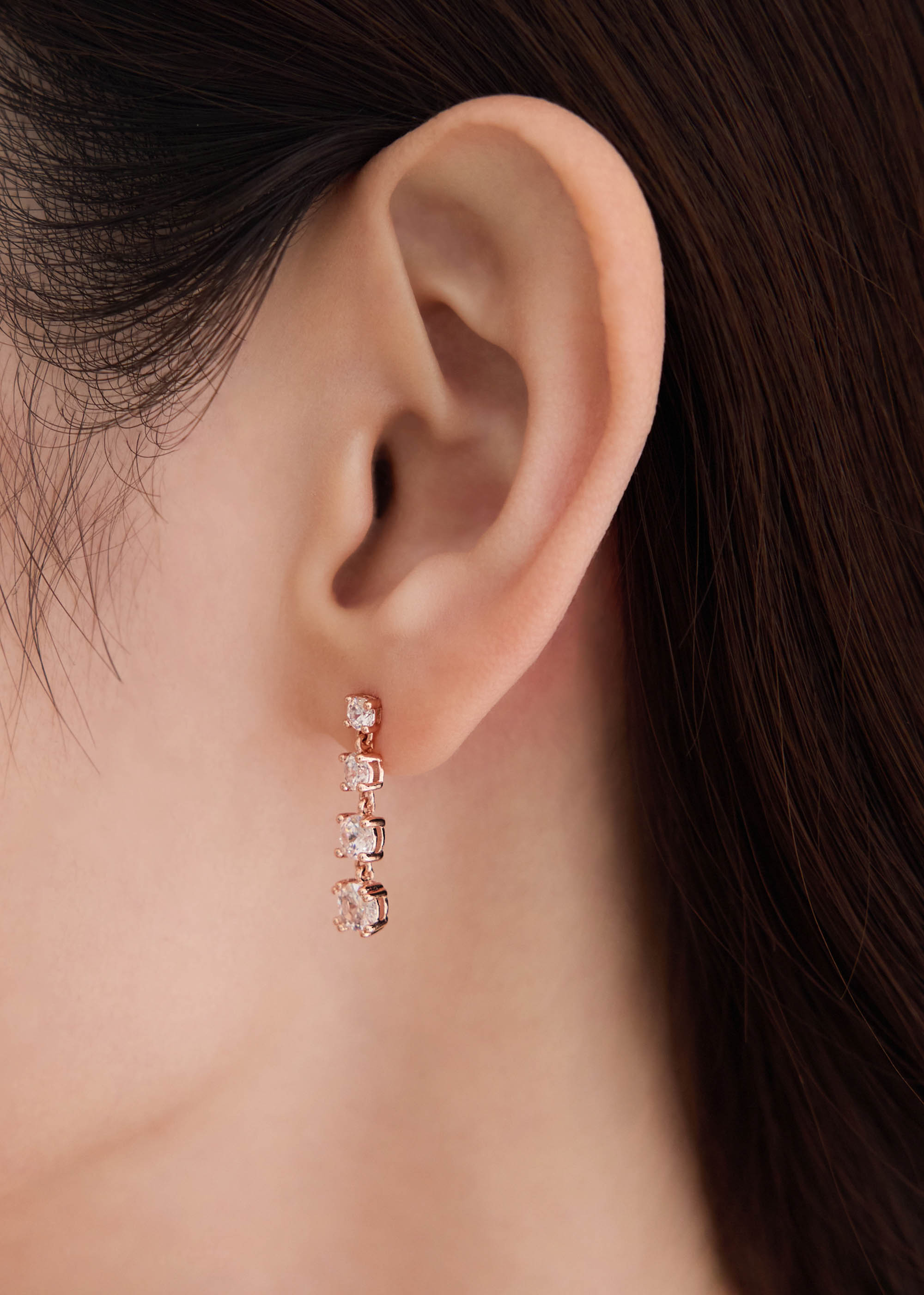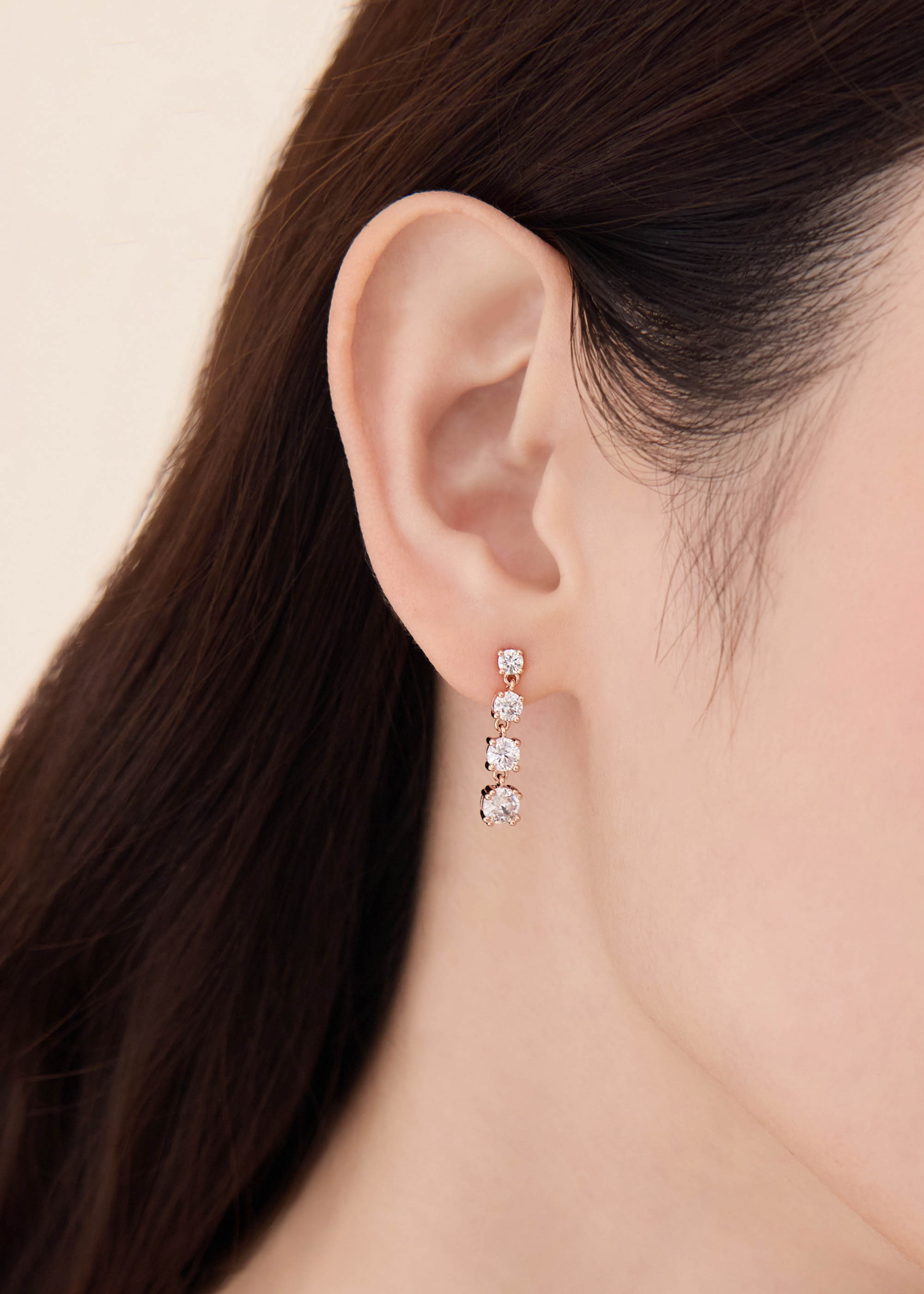 玫色晶鑽・銀針耳環