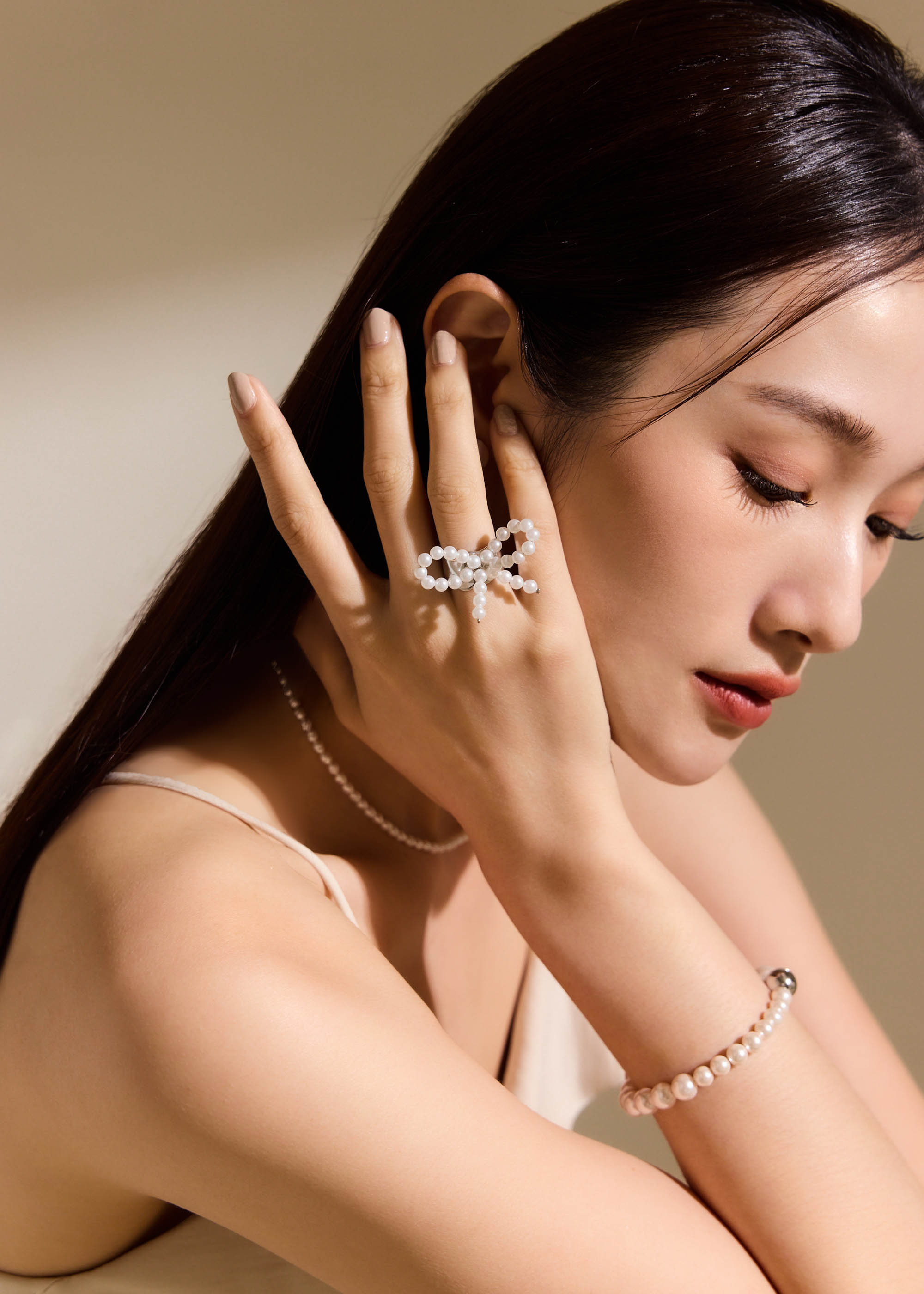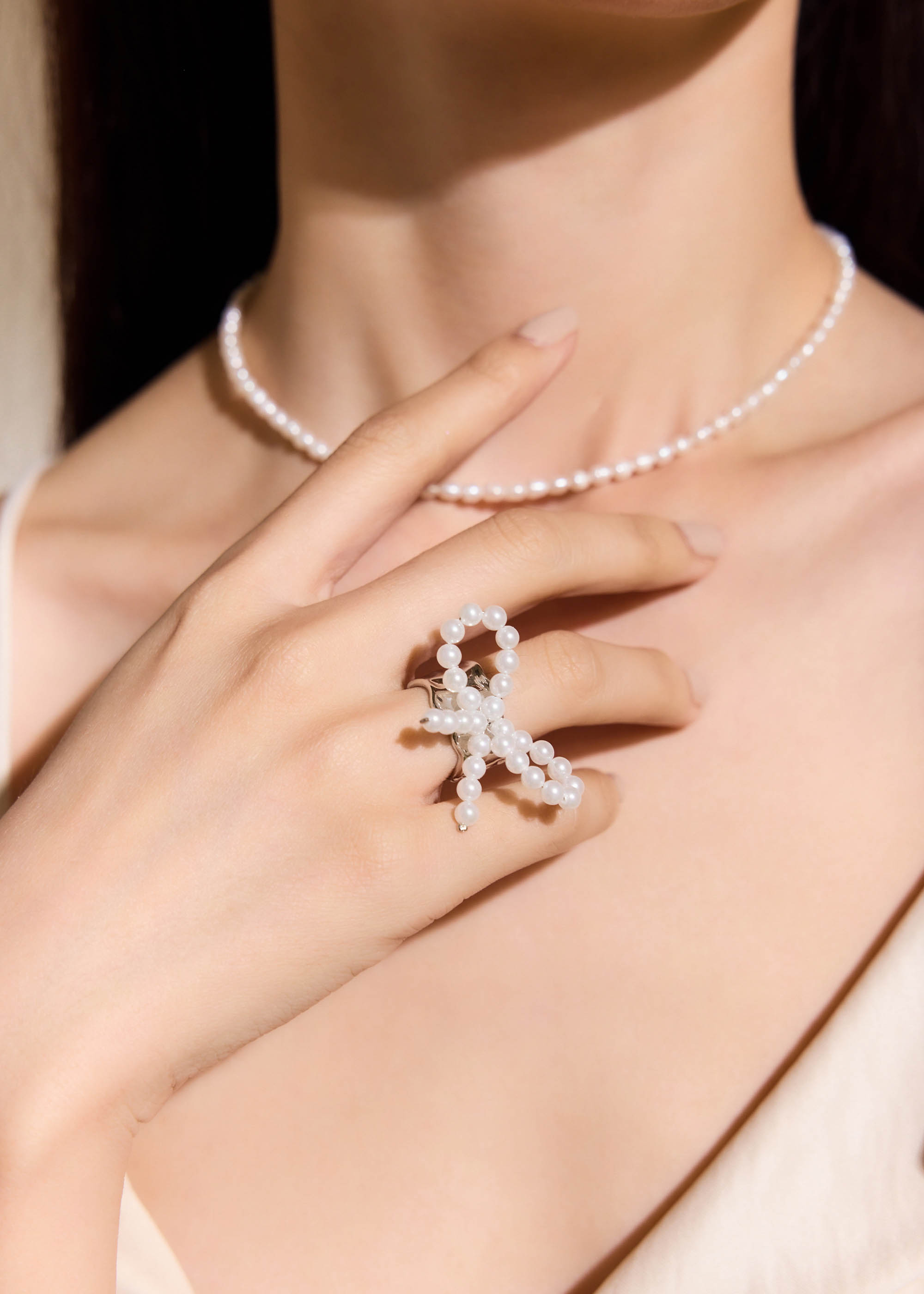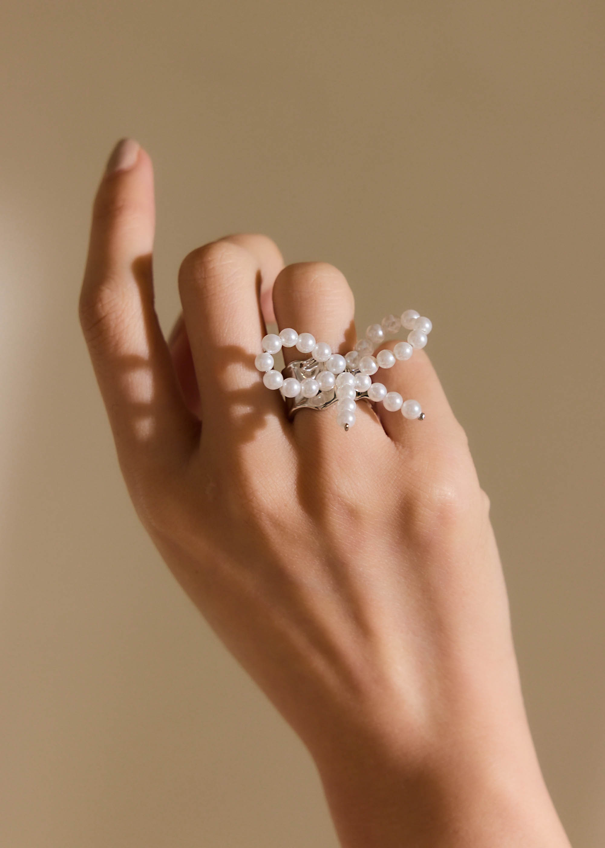 寬版蝴蝶結珍珠・戒指