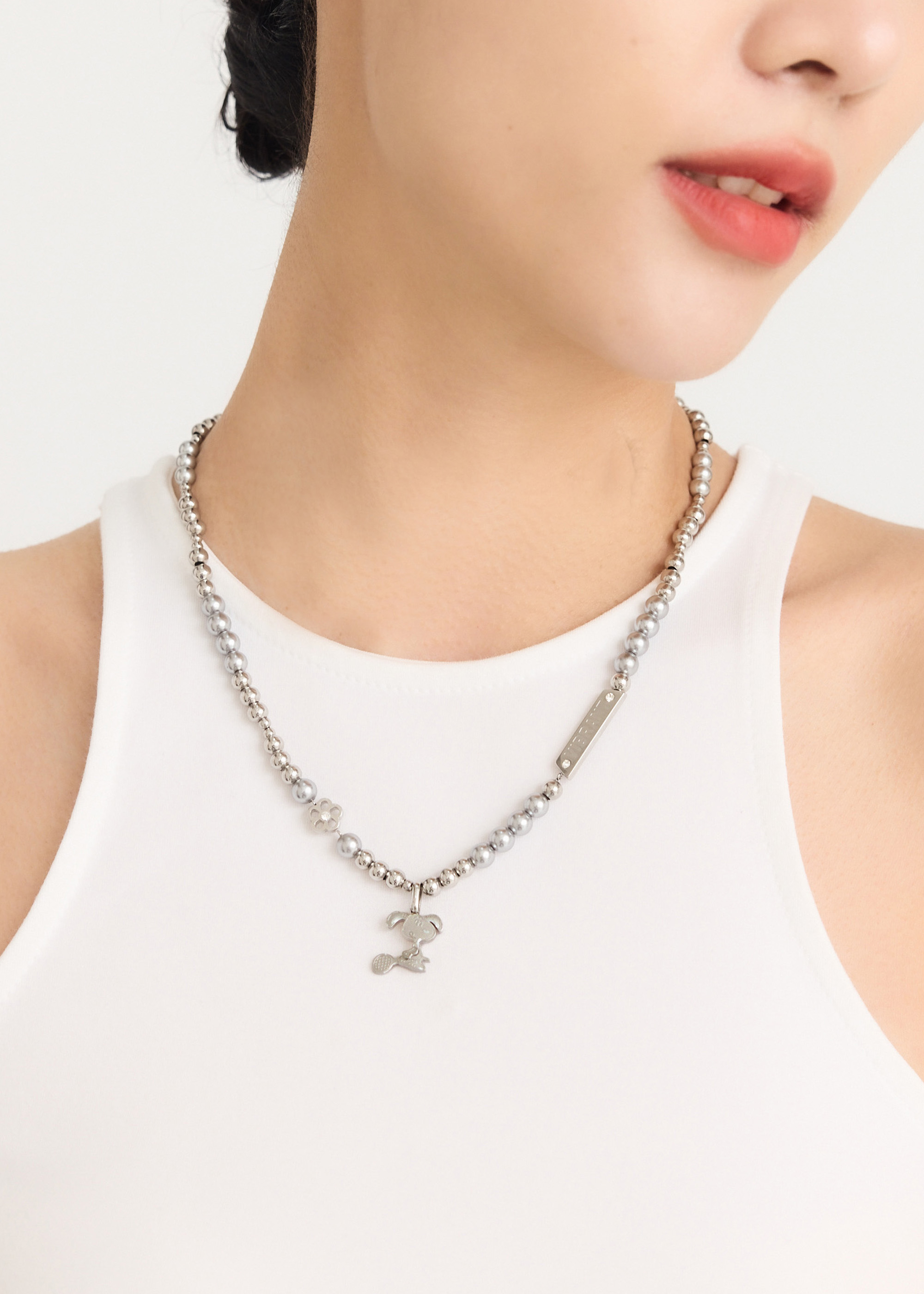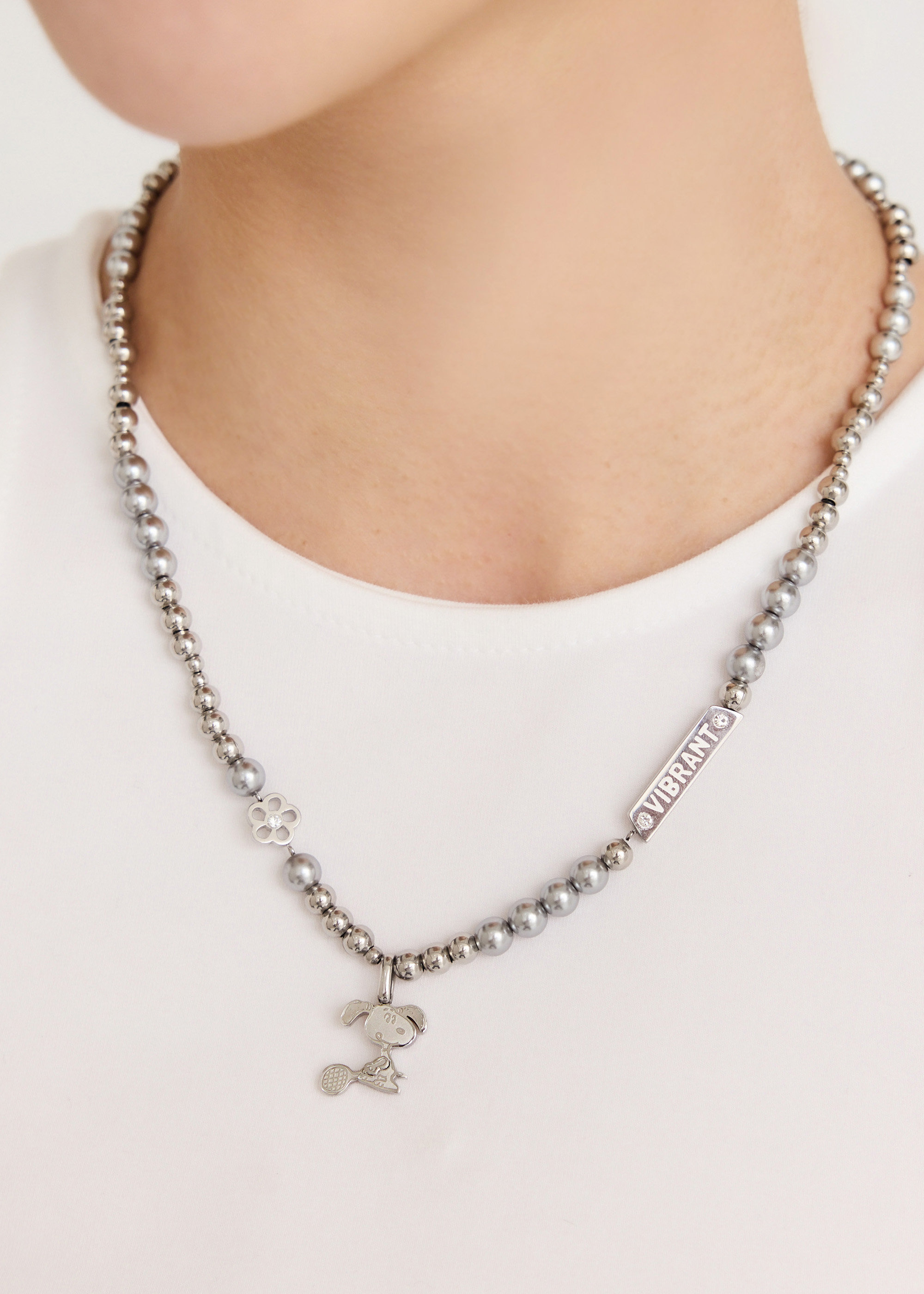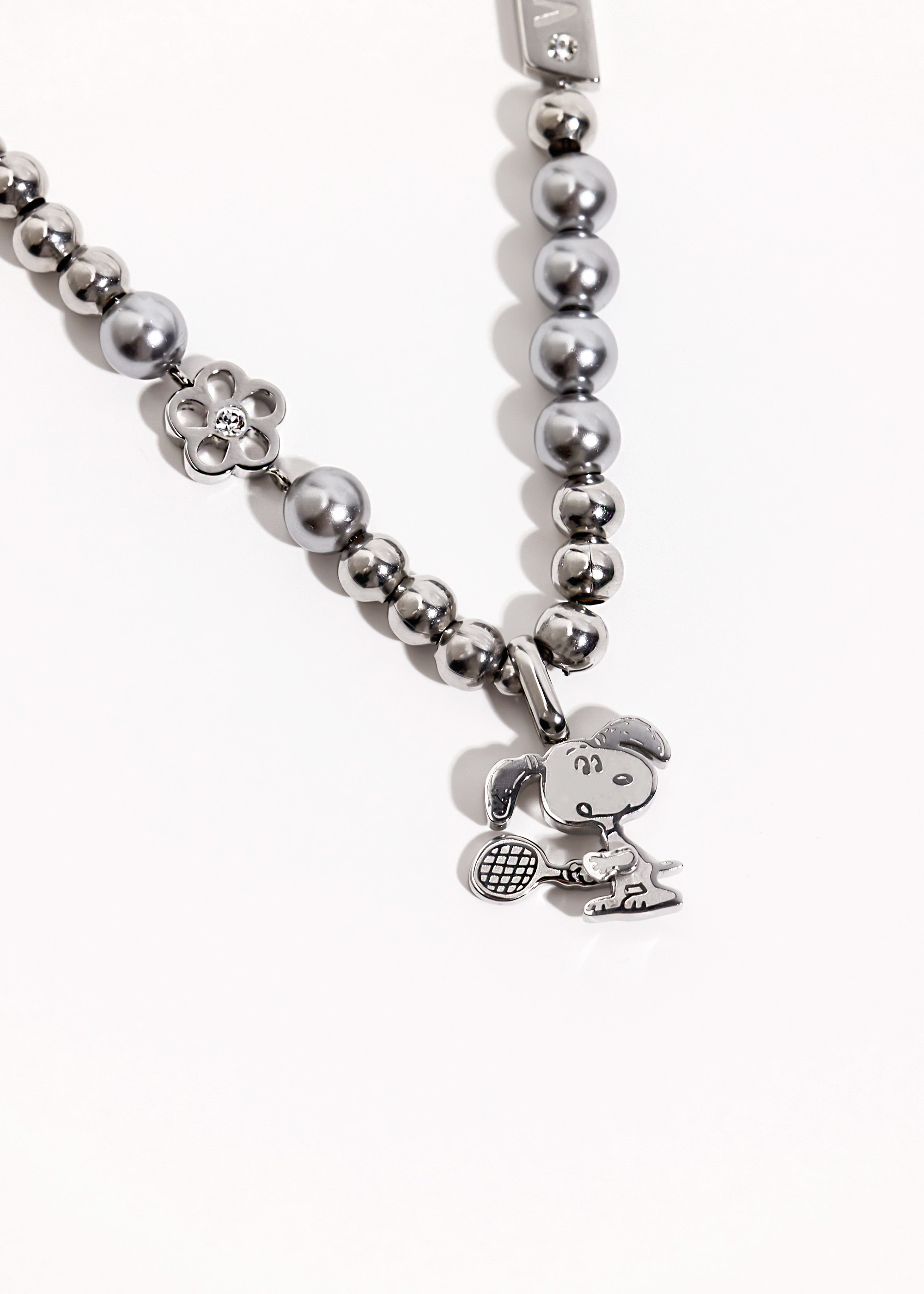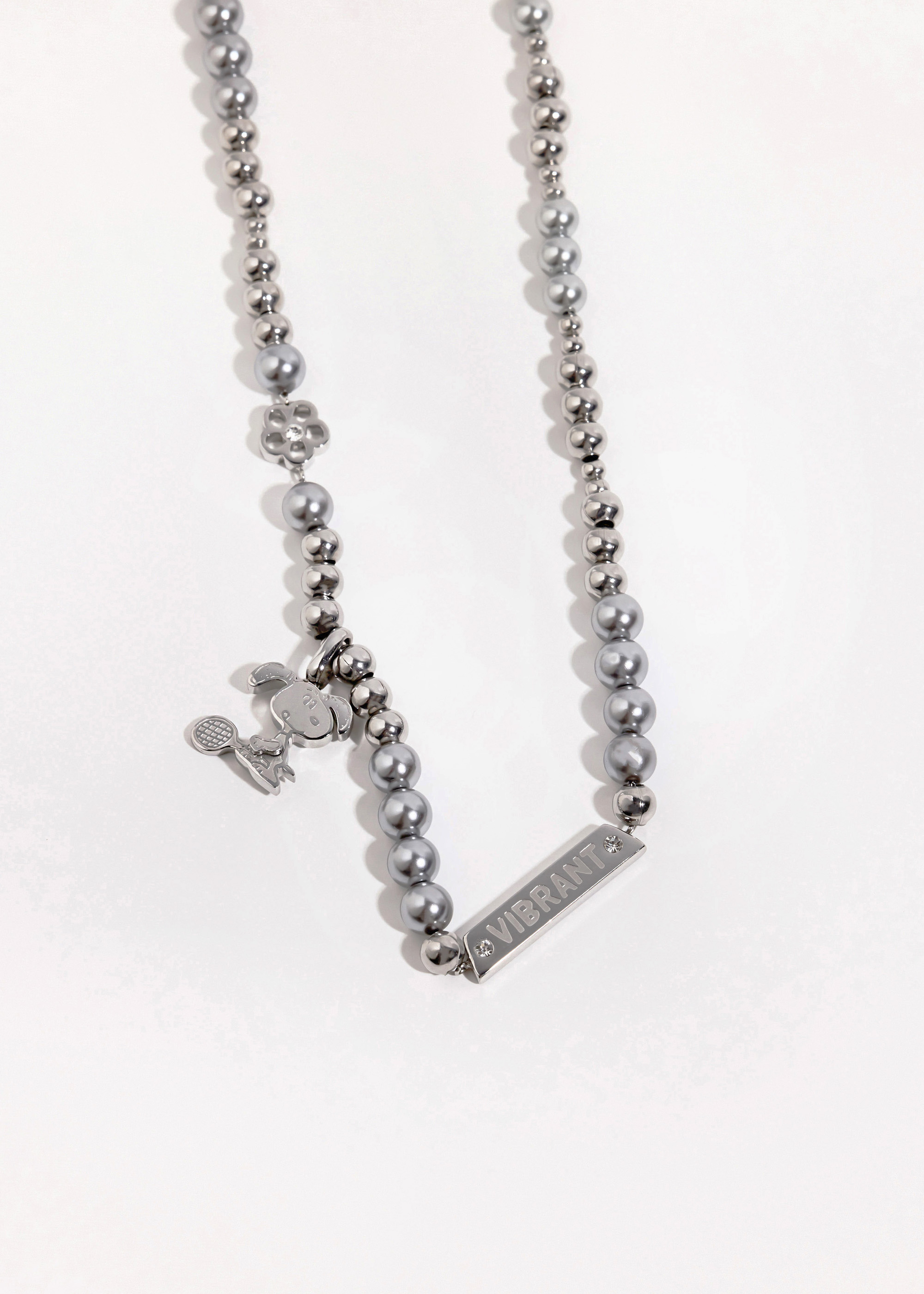 SNOOPY聯名|充滿活力的史努比打網球・灰色珍珠純鋼項鍊