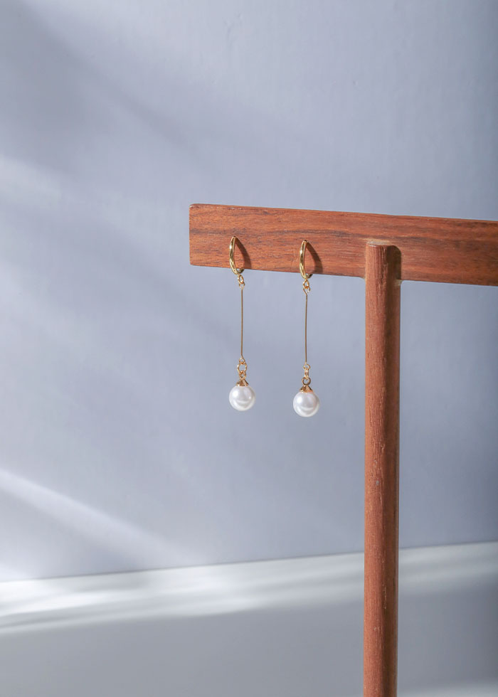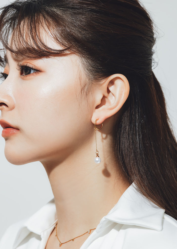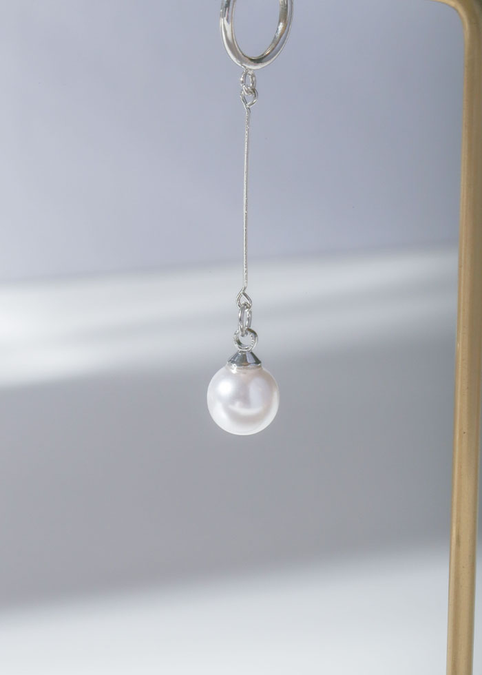 優雅垂掛珍珠・夾式耳環