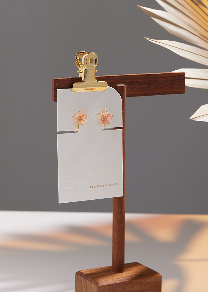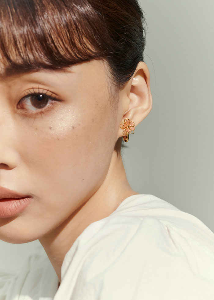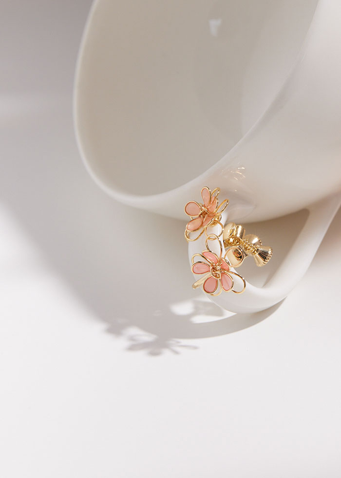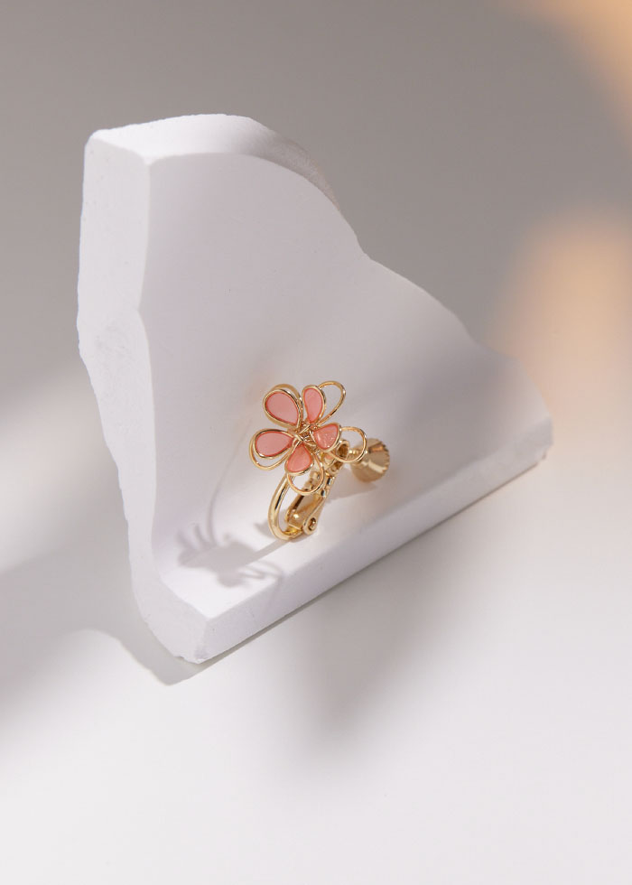 粉色簍空小花.夾式耳環