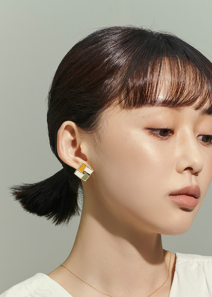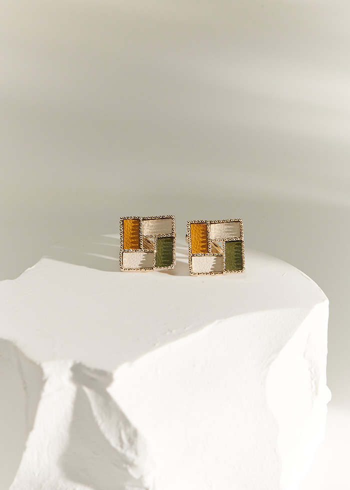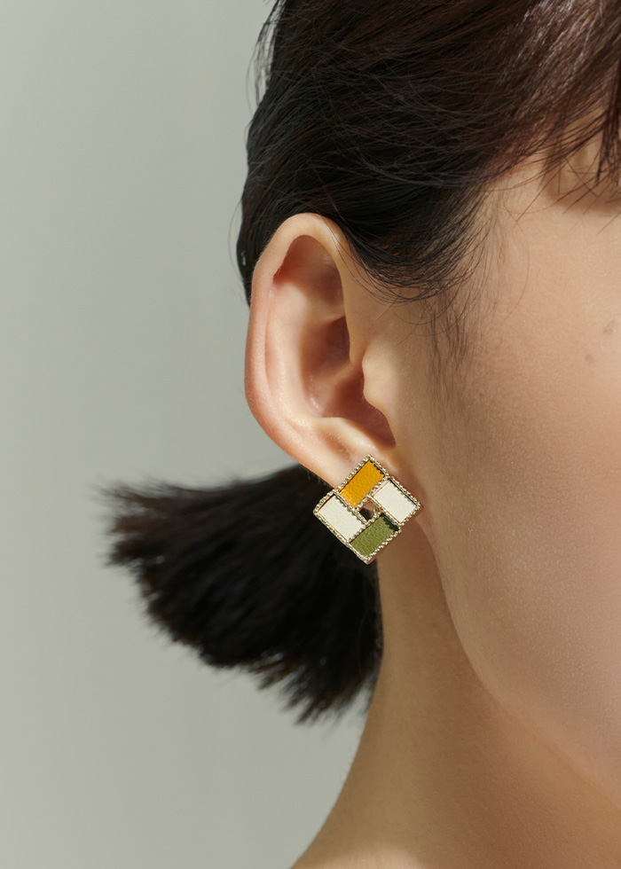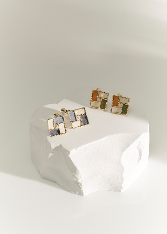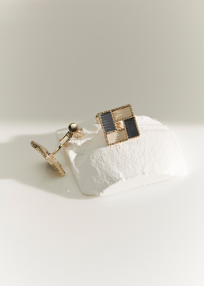 鏤空撞色皮革・夾式耳環
